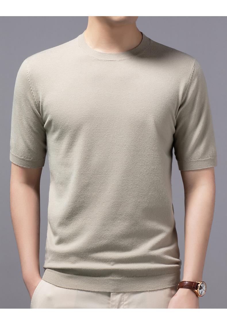 뉴 벨벳 남자 스웨터 니트 울베이스 셔츠 스웨터 반팔 반소매 풀오버 루즈 트렌디 라운드 넥 카멜 그레이