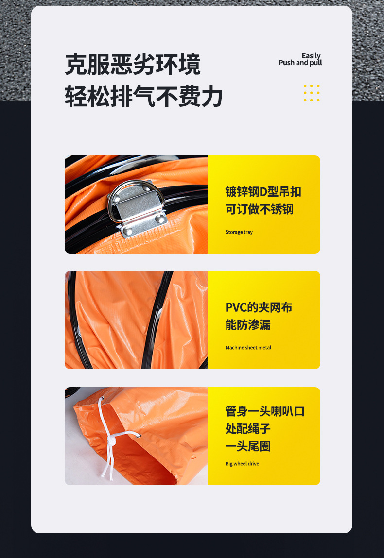망원경 덕트 고온 저항 배기 덕트 터널 광산 송풍기 환기 호스 연결 덕트.