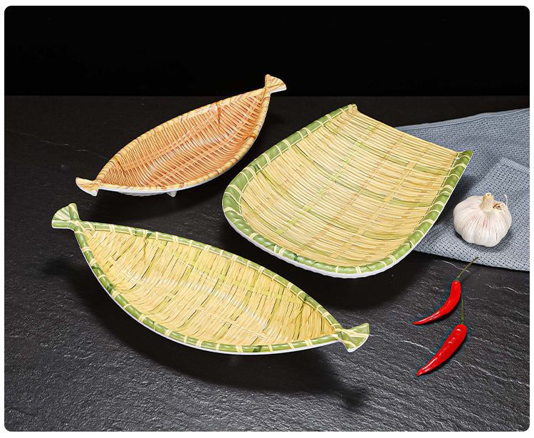 모조 대나무 플레이트 대형 디스크 냄비 식기 호텔 상업 바베큐 모방 도자기 플레이트 창조적 인 작은 꿈 도메인스토어 가기