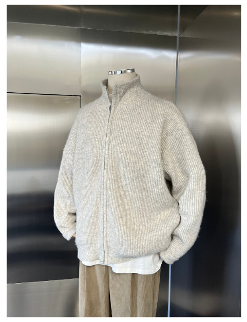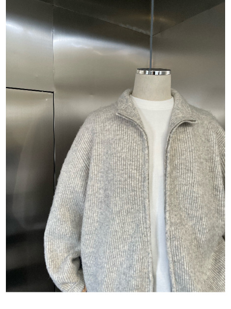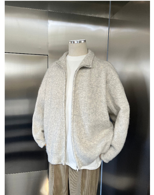 가을과 겨울 새로운 니트 지퍼 재킷 원래 게으른 하이 엔드 센스 루즈 캐주얼 터틀넥 스웨터 카디건 탑스토어 가기