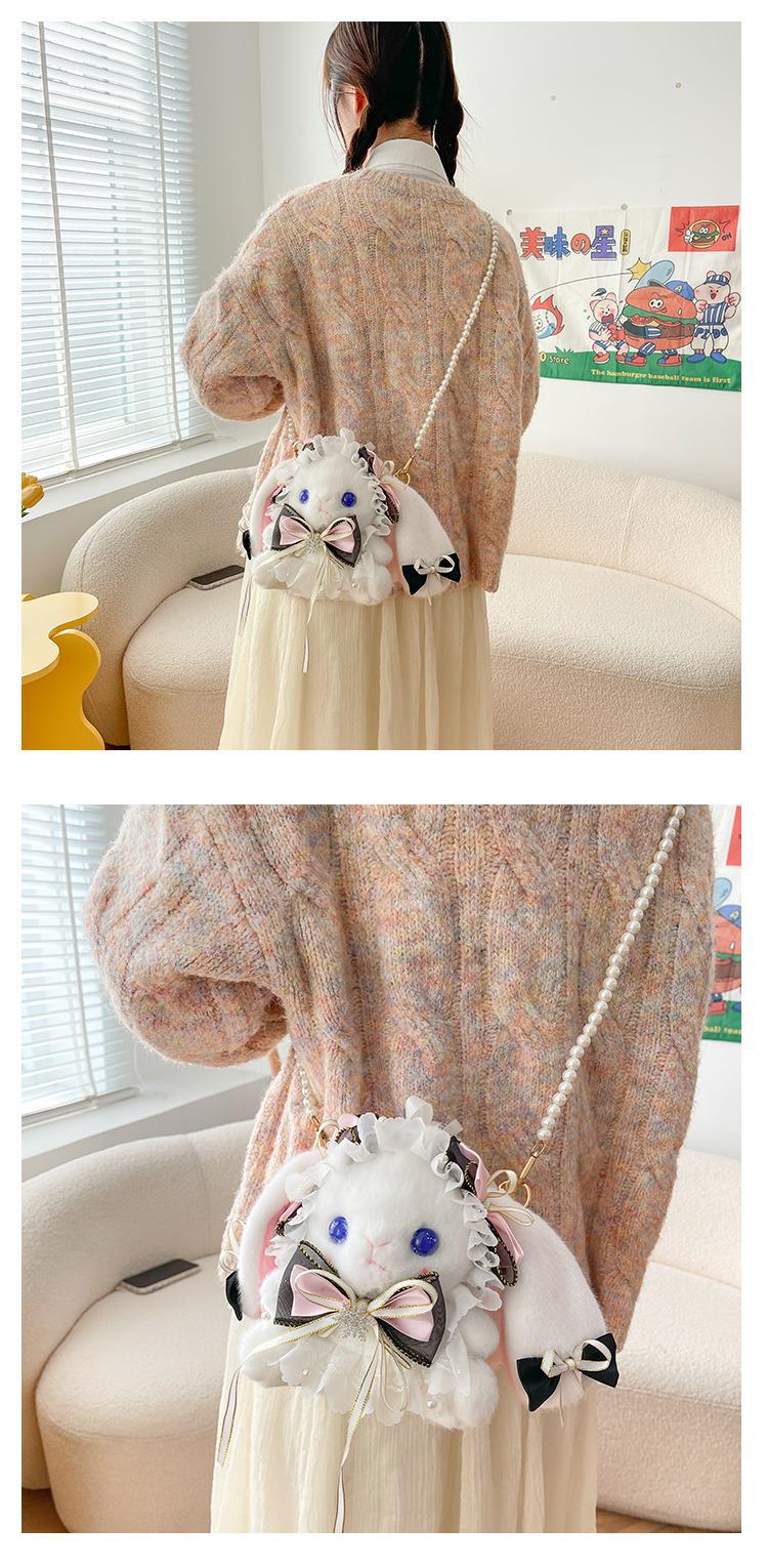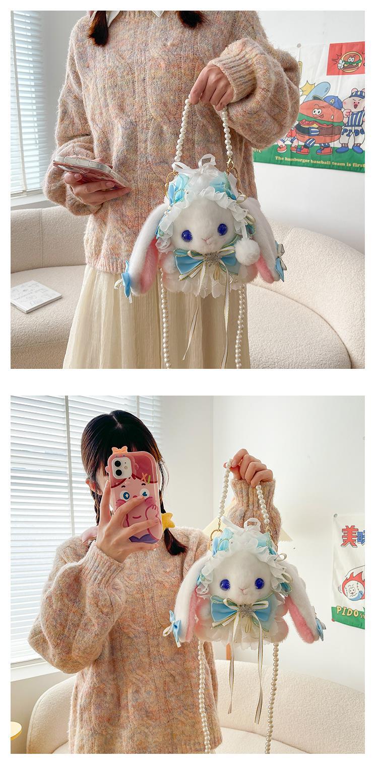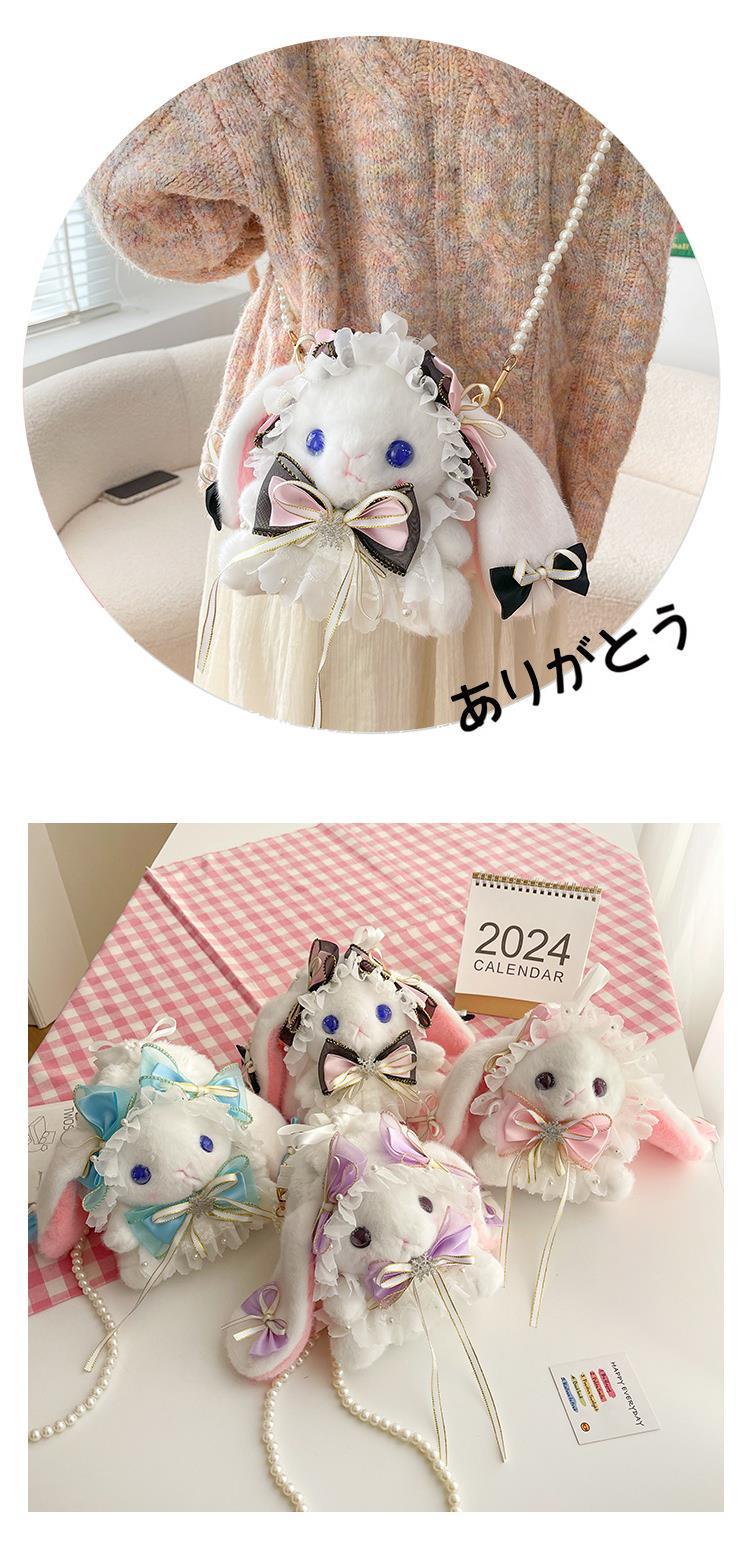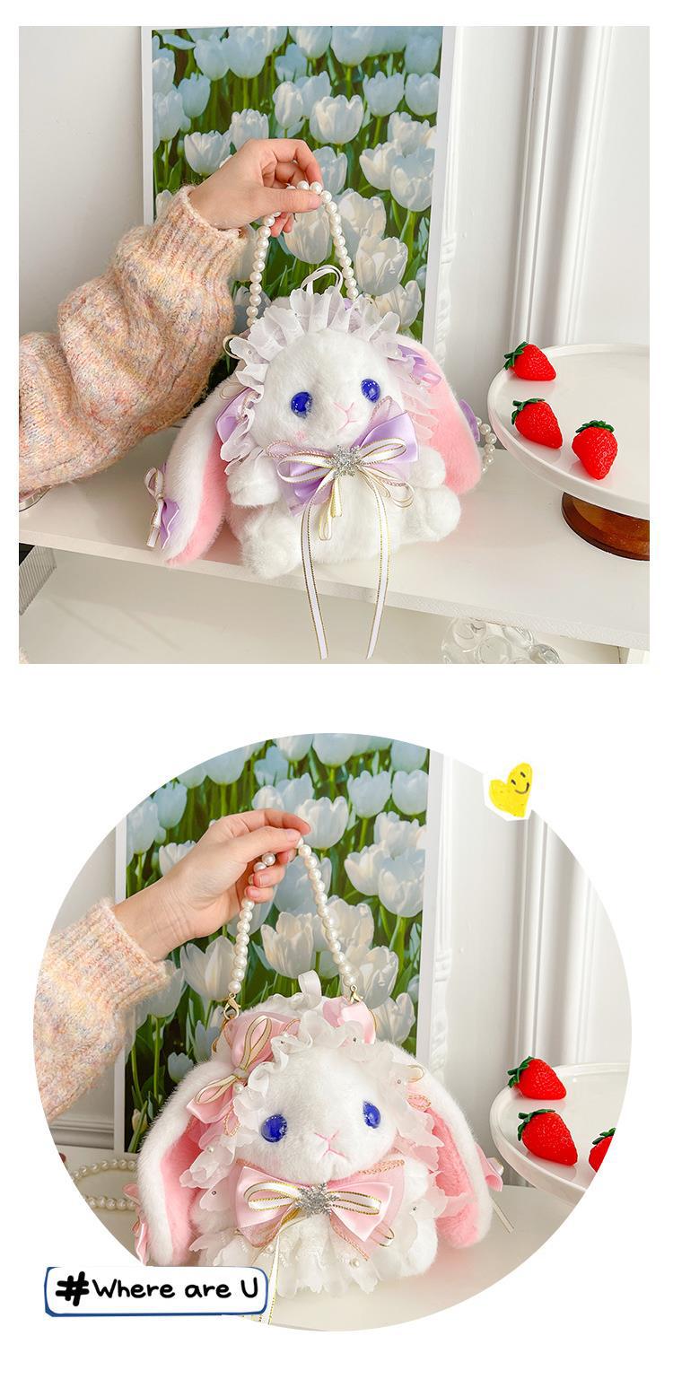 어린이 아기 소녀의 귀여운 로리타 토끼 가방 활 봉제 핸드백 패션 구슬 크로스 바디 백
