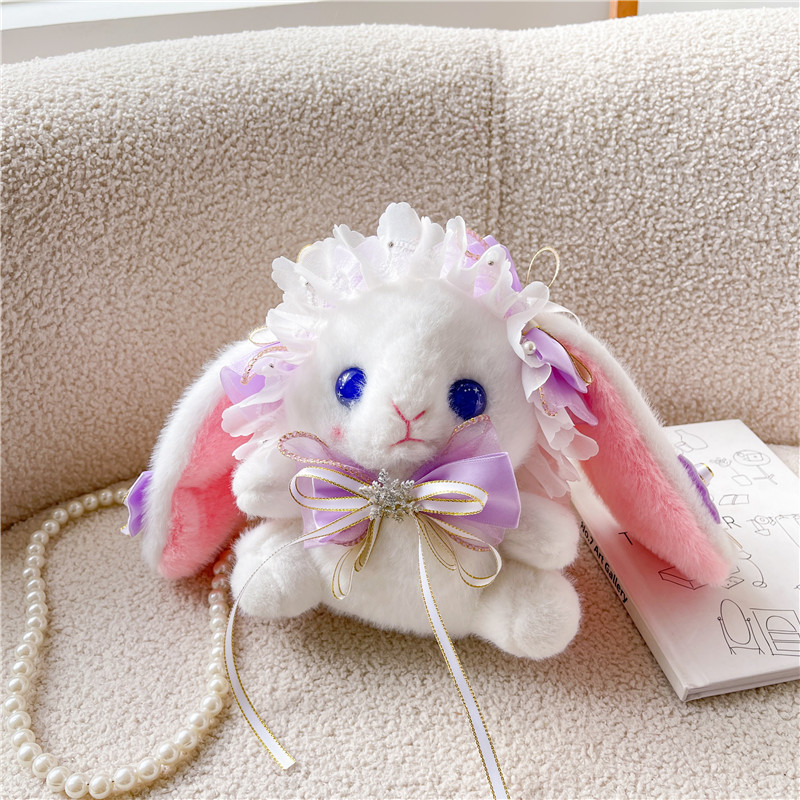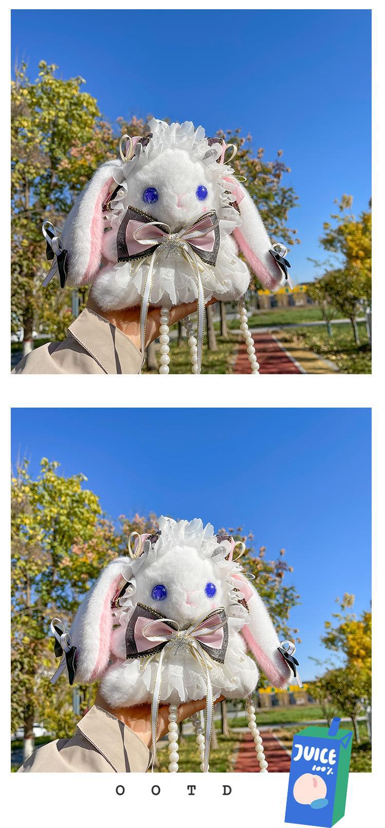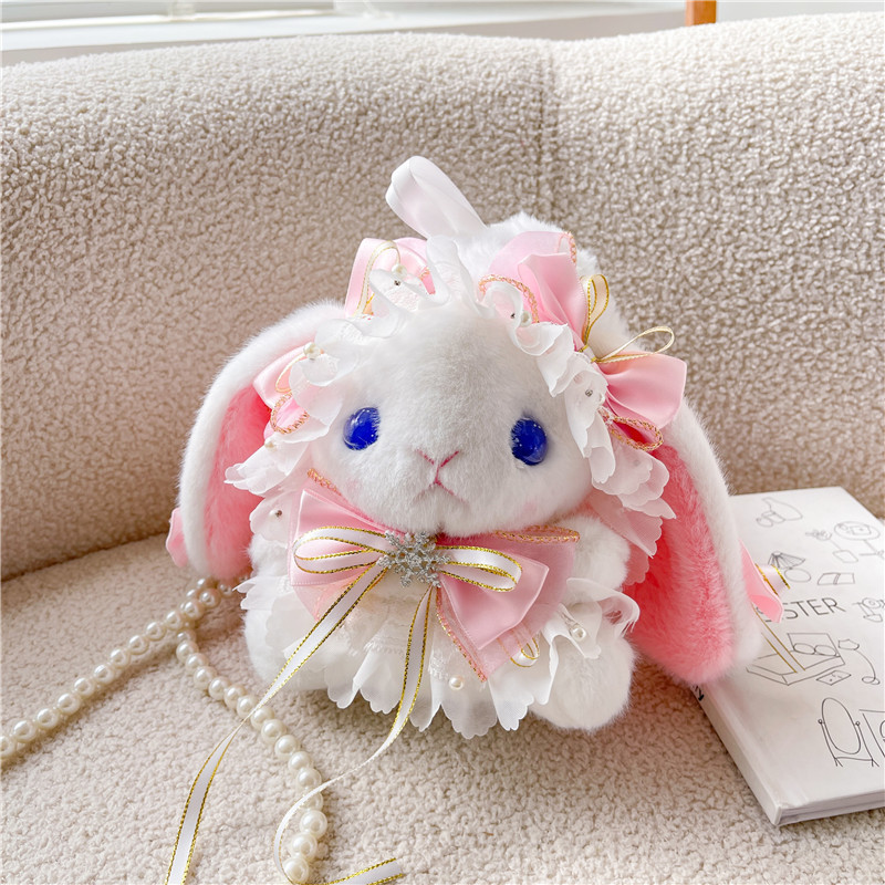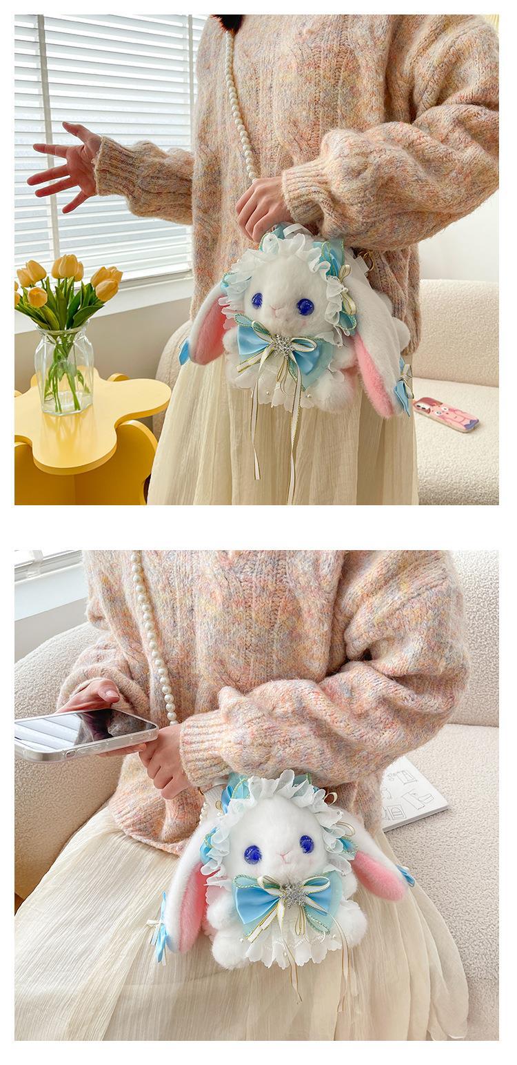 어린이 아기 소녀의 귀여운 로리타 토끼 가방 활 봉제 핸드백 패션 구슬 크로스 바디 백