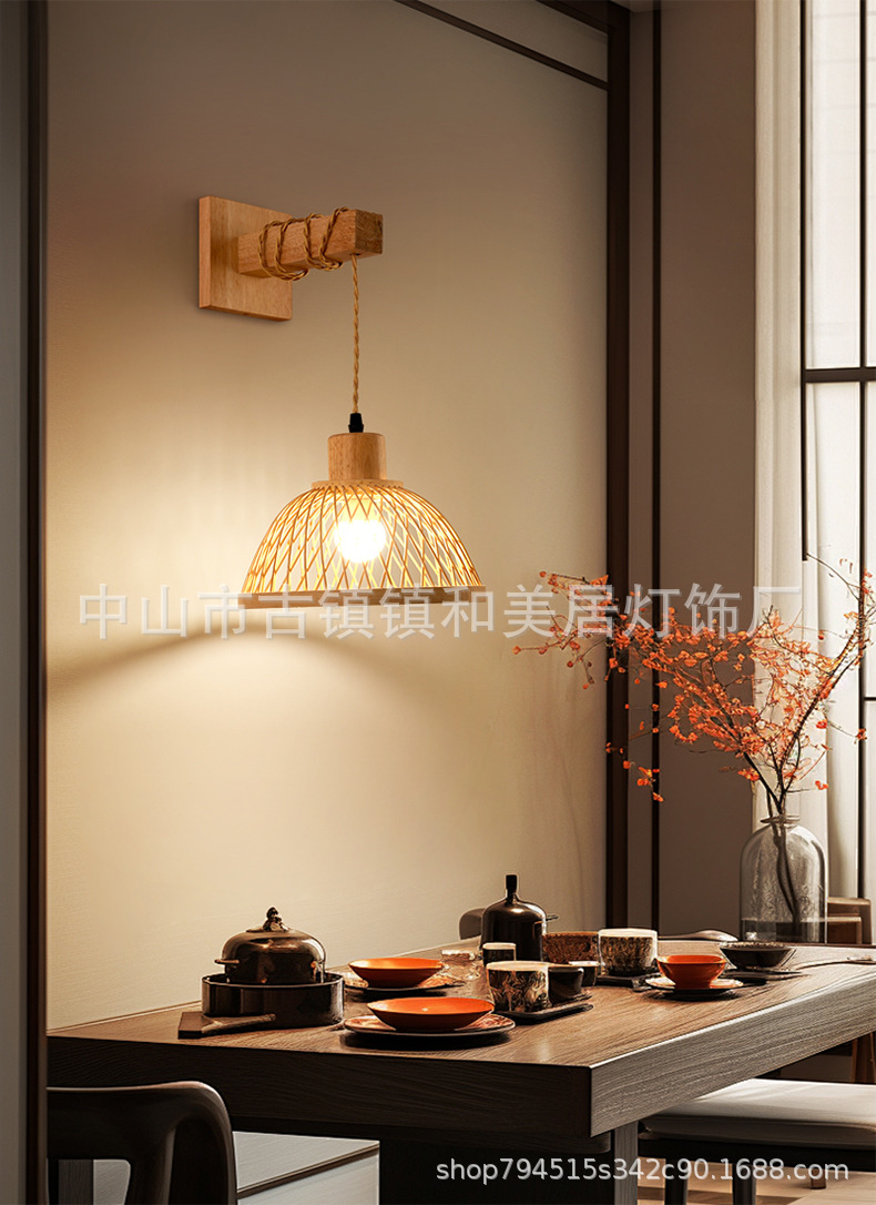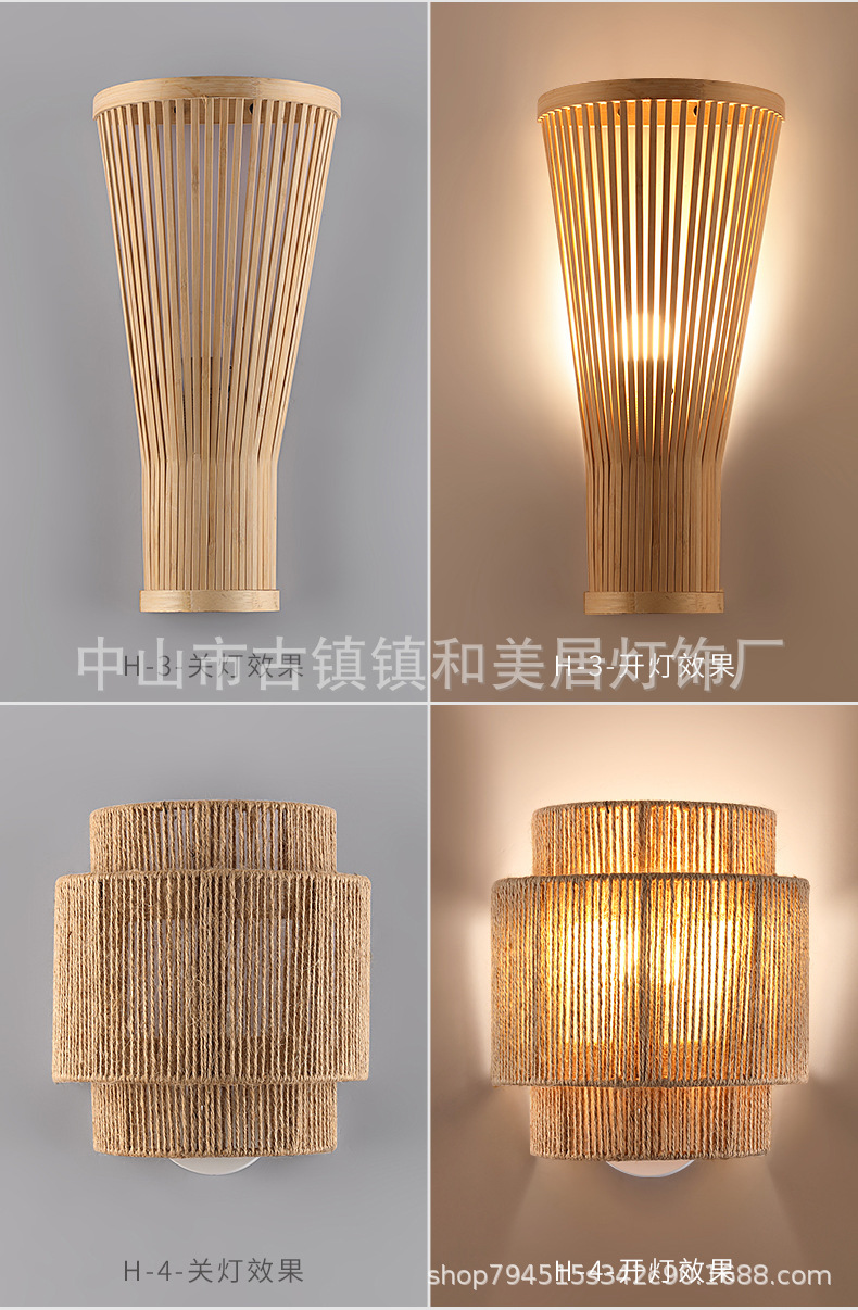 현대 미니멀리스트 일본 스타일 로그 스타일 등나무 수제 하이 엔드 홈스테이 침실 침실 벽 램프 복도 램프스토어 가기