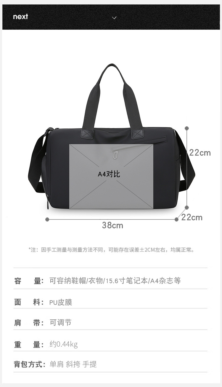대외 무역 단거리 여행 가방, 야외 스포츠 가방, 피트니스 가방, 건식 및 습식 분리 크로스 바디 백, 경량 배낭, 수하물 가방스토어 가기