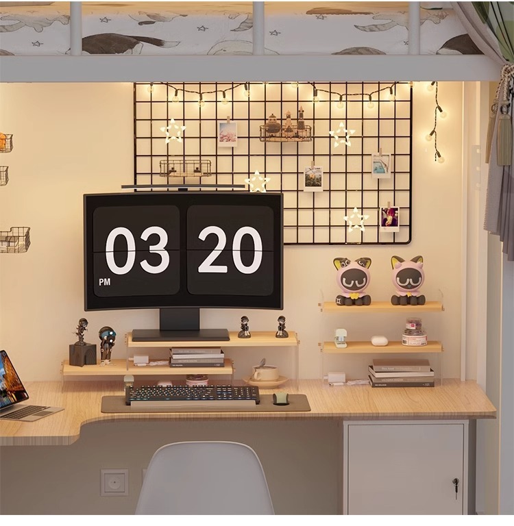 아크릴 컴퓨터 높은 랙 스토리지 랙 데스크탑 스토리지 랙 기본 조합 기숙사 모니터 컴퓨터 랙 책꽂이스토어 가기