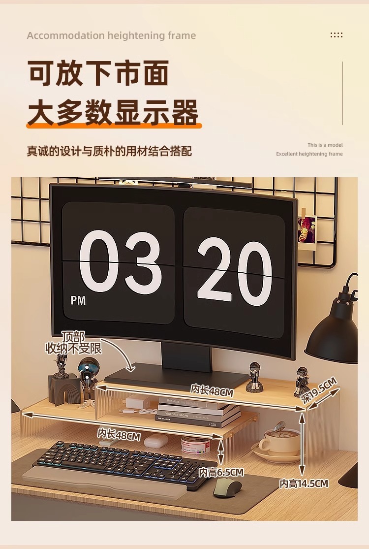아크릴 컴퓨터 높은 랙 스토리지 랙 데스크탑 스토리지 랙 기본 조합 기숙사 모니터 컴퓨터 랙 책꽂이