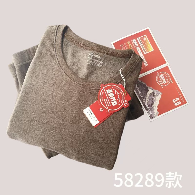 Hua 58289 형제 온천 피부 영양 크루 넥 남자 세트 가을과 겨울 열 속옷 실크 캐시미어 두꺼운 가을 옷과 바지스토어 가기