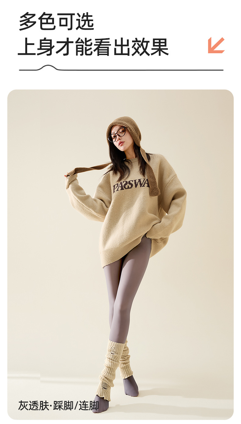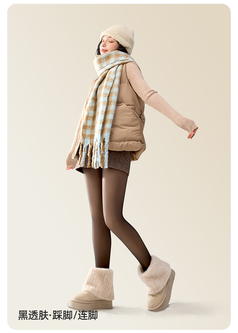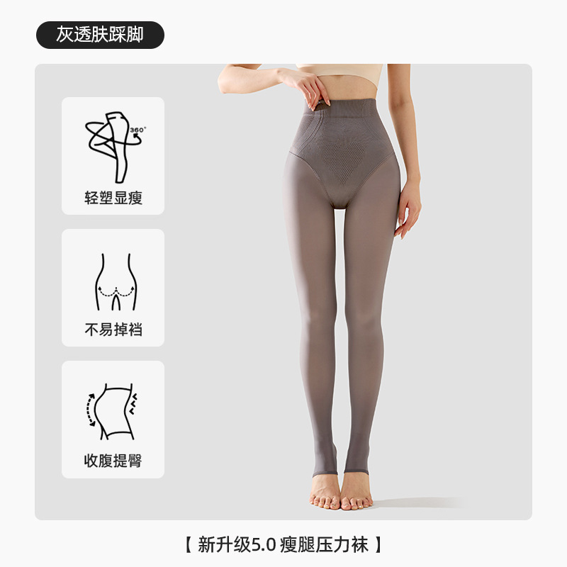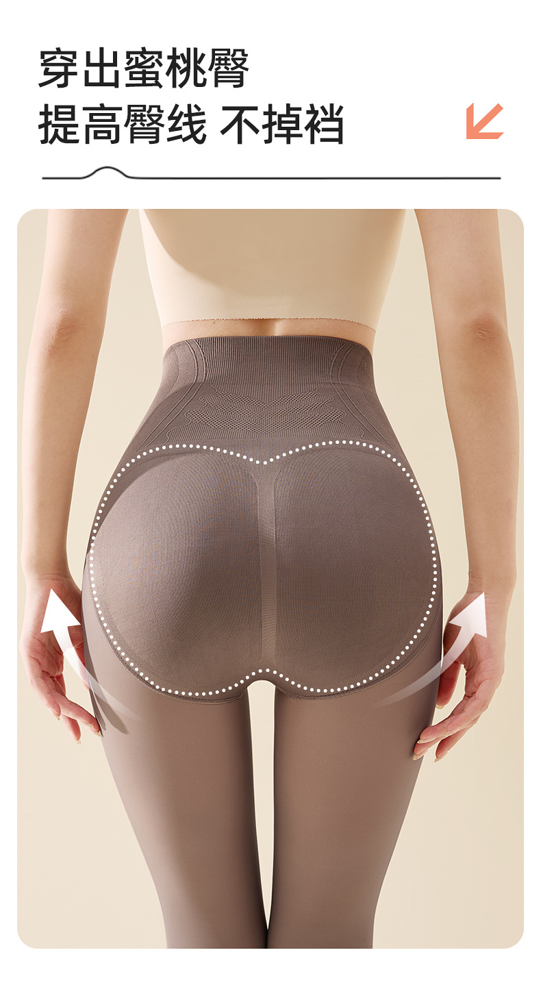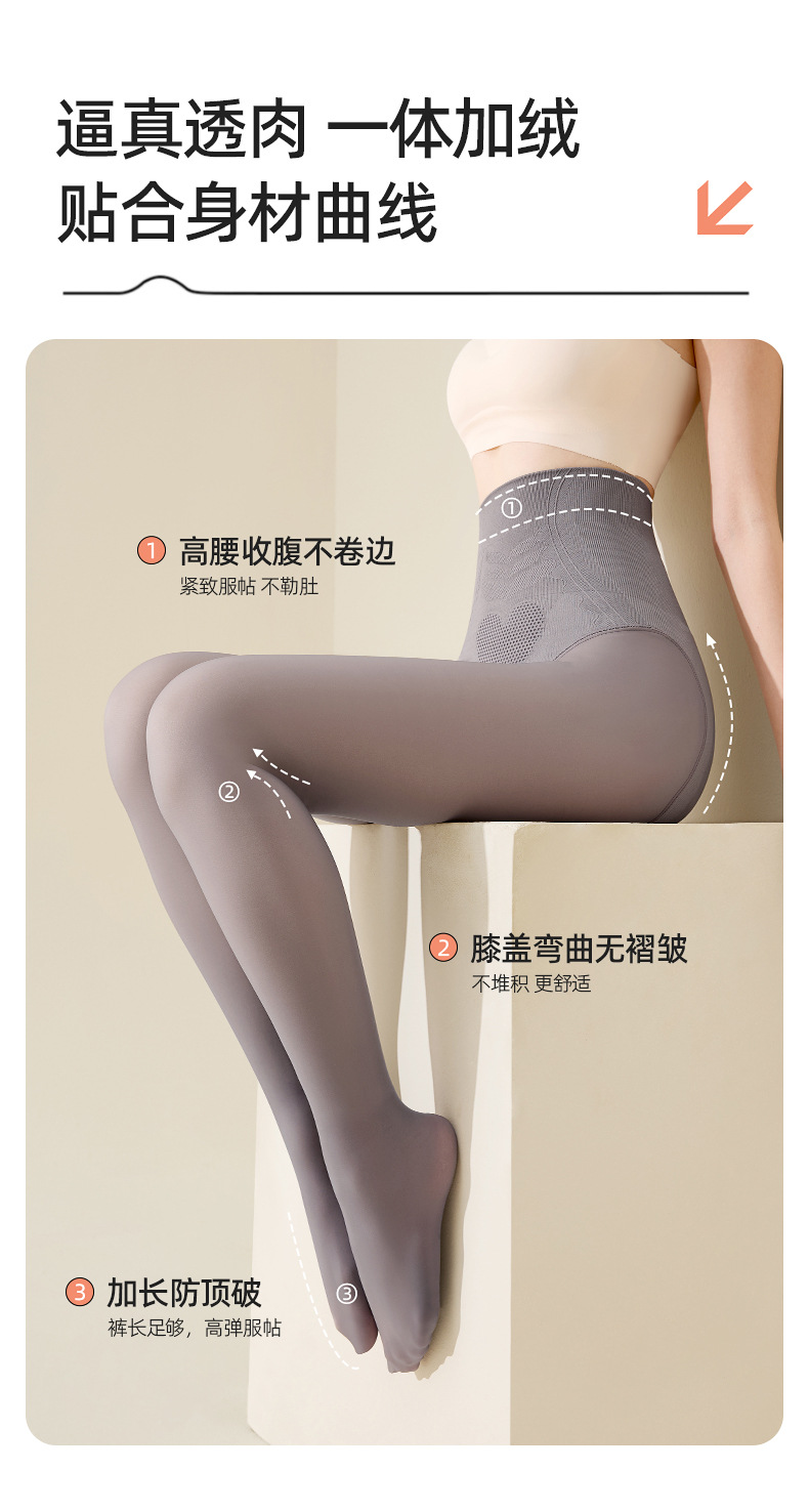 키가 큰 스튜어디스 회색 피부-투명한 레깅스 여성의 가을과 겨울 기모 높은 허리 물고기 뼈 복부-들어 올리는 엉덩이 가짜 팬티 스타킹스토어 가기