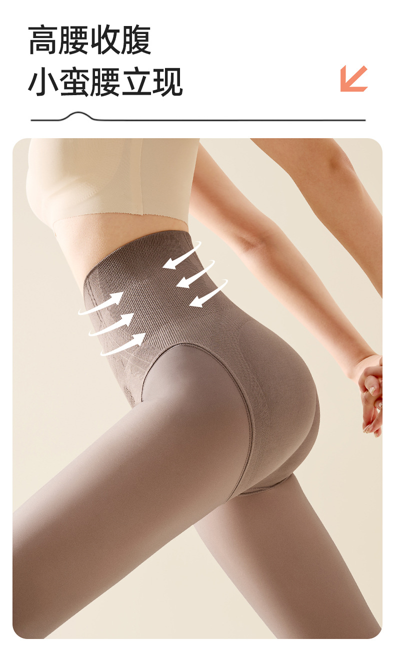 키가 큰 스튜어디스 회색 피부-투명한 레깅스 여성의 가을과 겨울 기모 높은 허리 물고기 뼈 복부-들어 올리는 엉덩이 가짜 팬티 스타킹