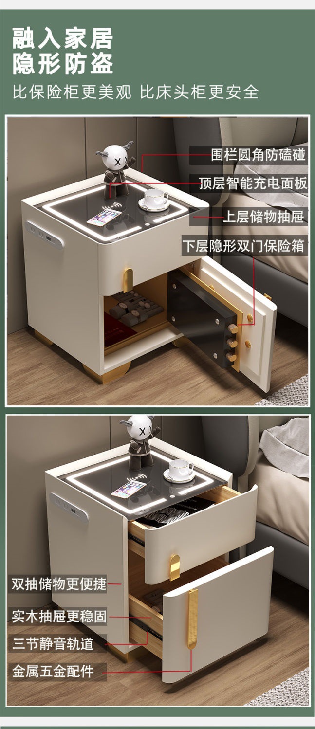 안전한 가정 통합 지능형 새 침대 테이블 단단한 나무 침실 저장 다기능 간단한 현대 보이지 않는스토어 가기