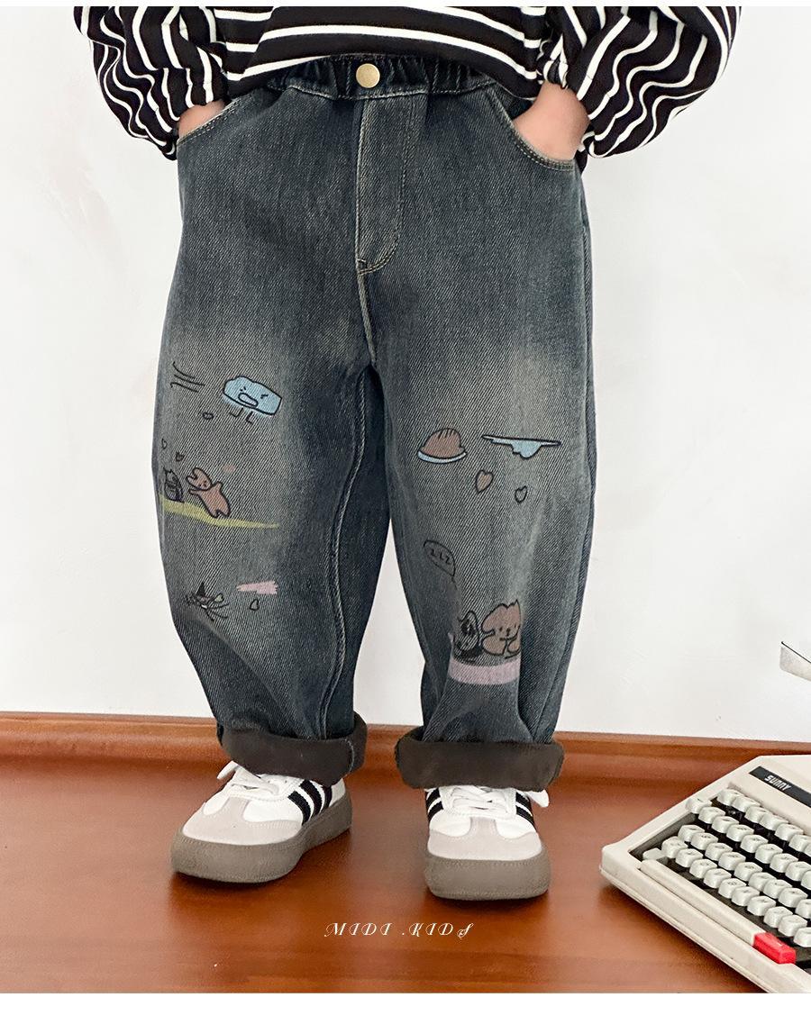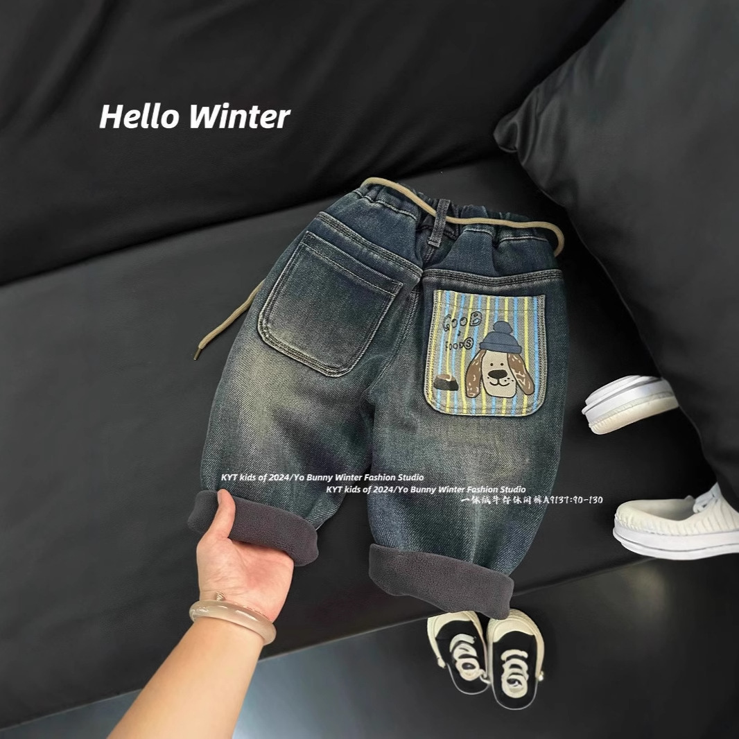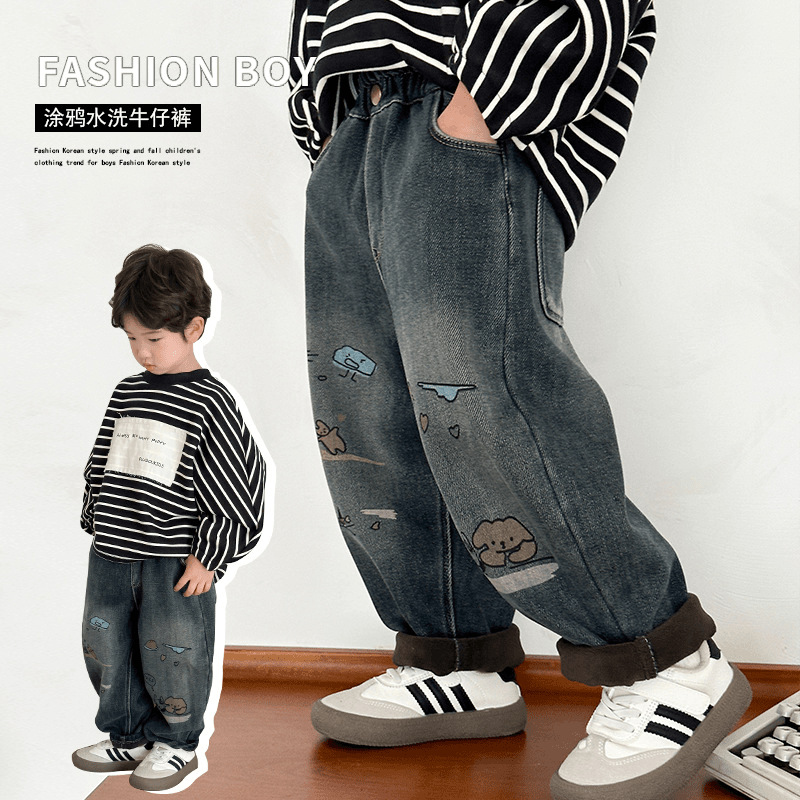 남아용 세련된 기모 안감 아우터용 가을 겨울 청바지 2025 신상 여아용 두꺼운 캐주얼 겨울옷 아동 바지스토어 가기