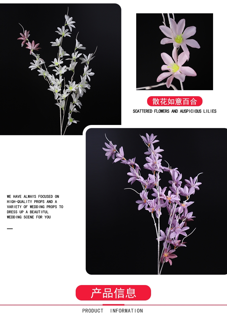 仿真花材假花红色拱门地排订婚路引如意百合插花森系花材婚庆单支