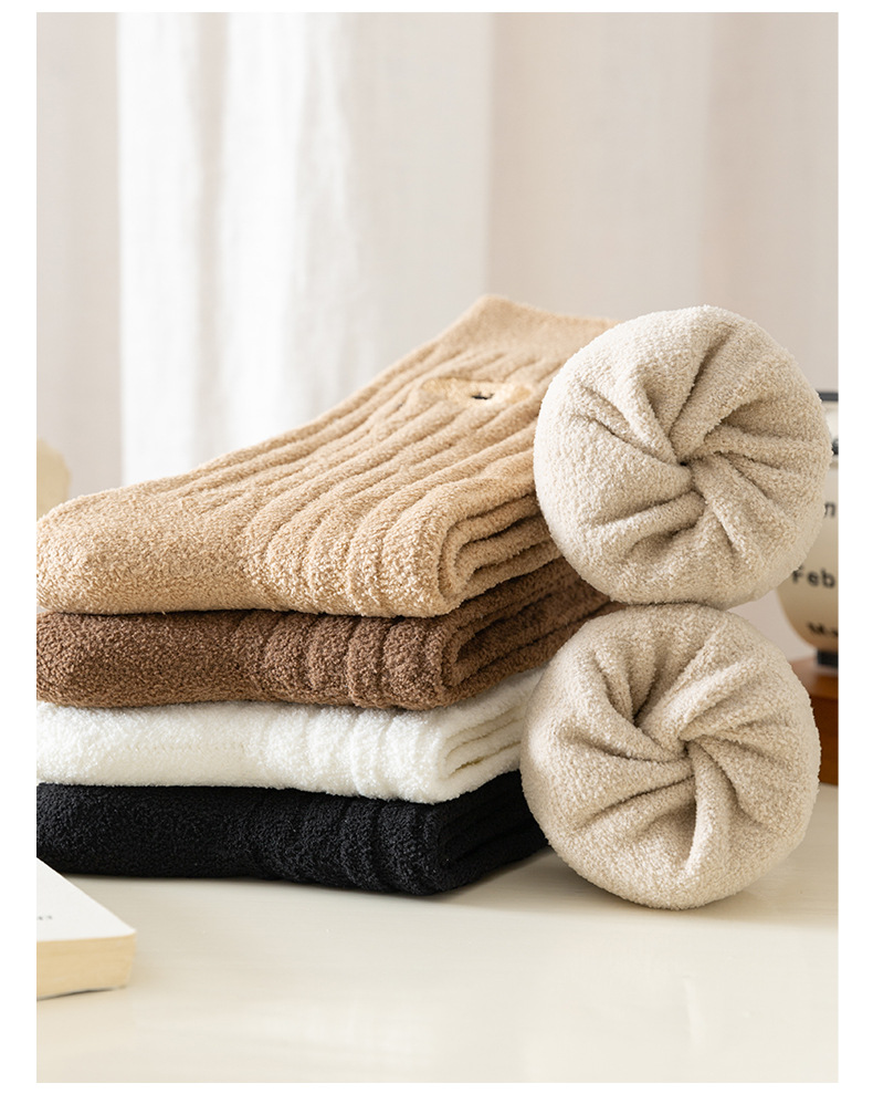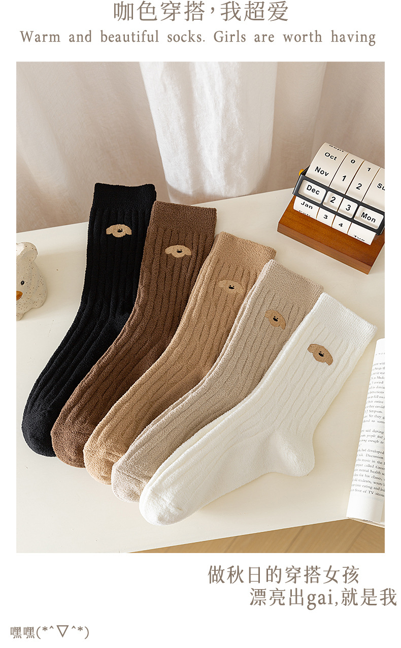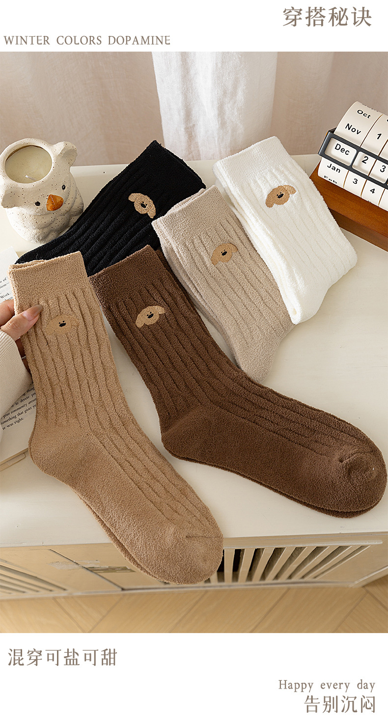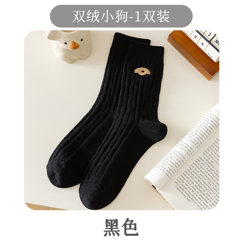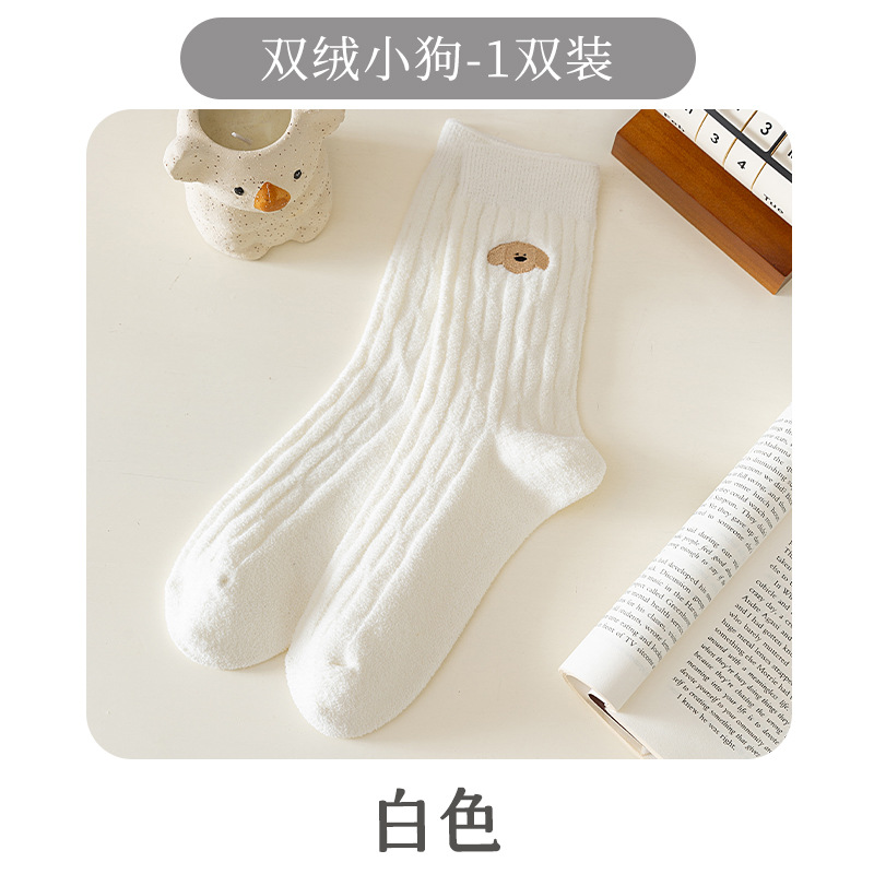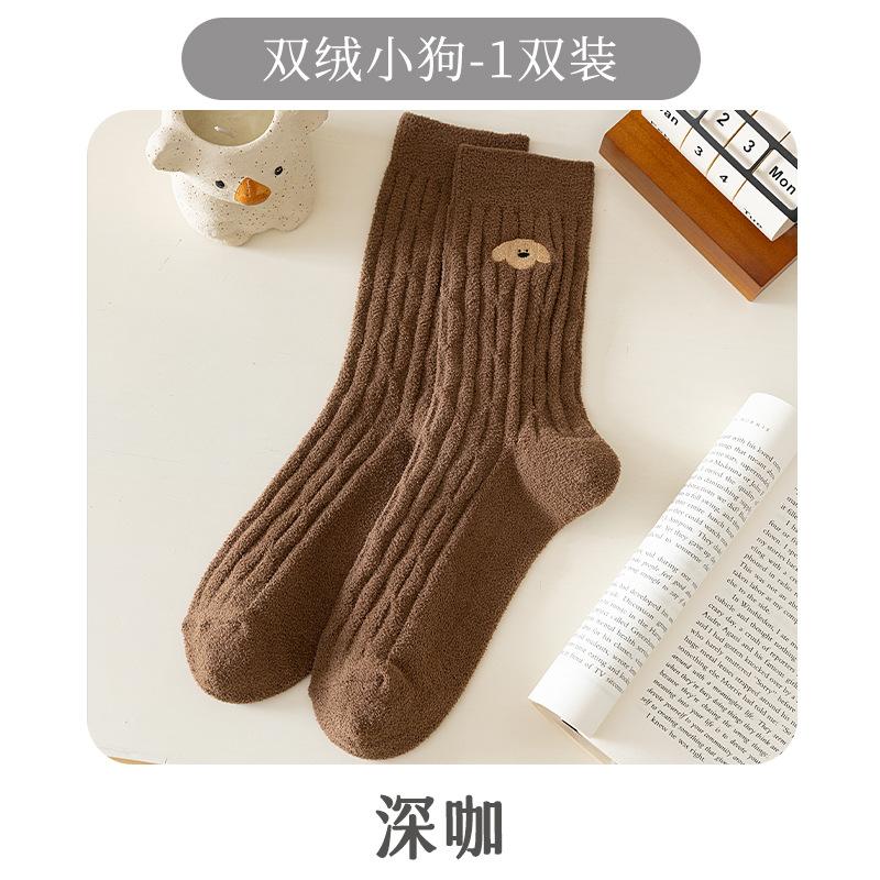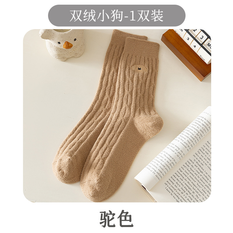 한국식 더블 벨벳 퍼피 소프트 여자 중간 길이 양말 두꺼운 따뜻한 Ins 트렌디 간단한 올 매치 스타킹 여성을위한 가을과 겨울 필 스타킹
