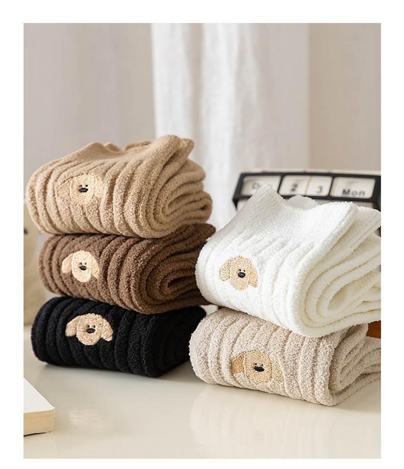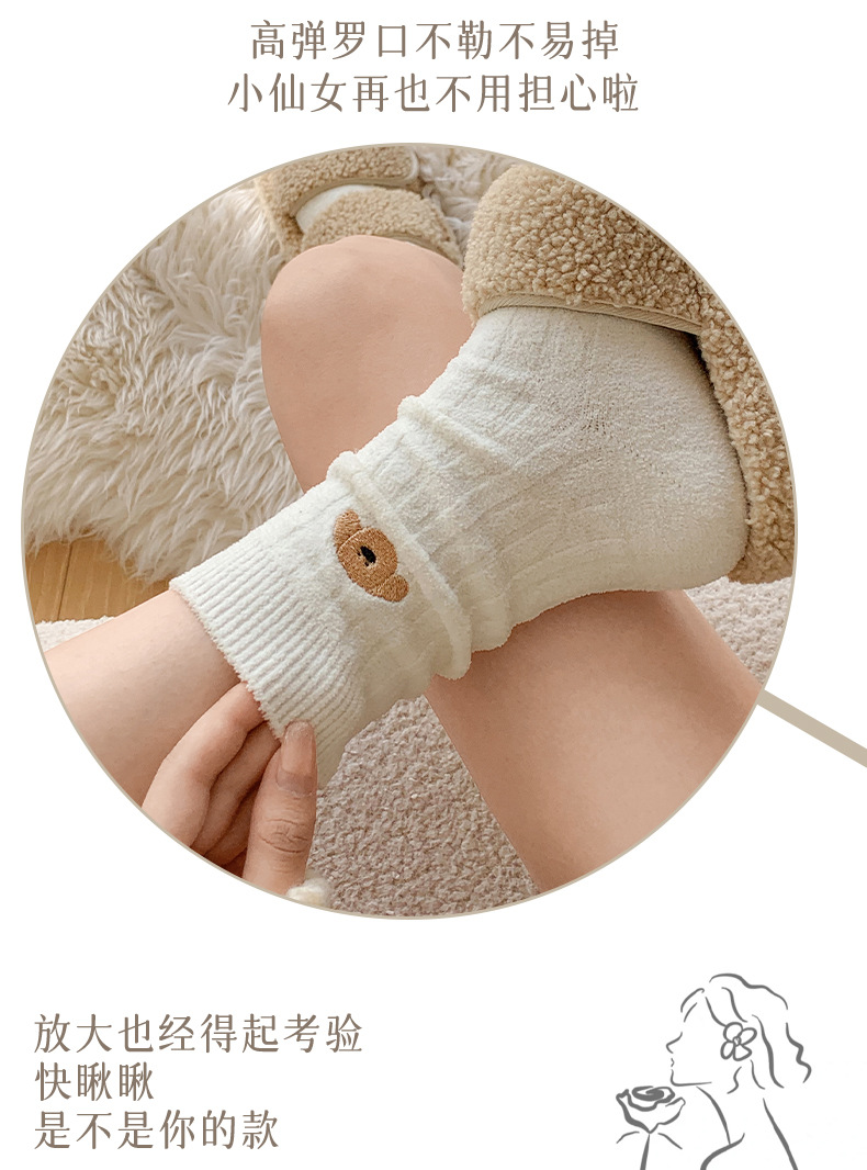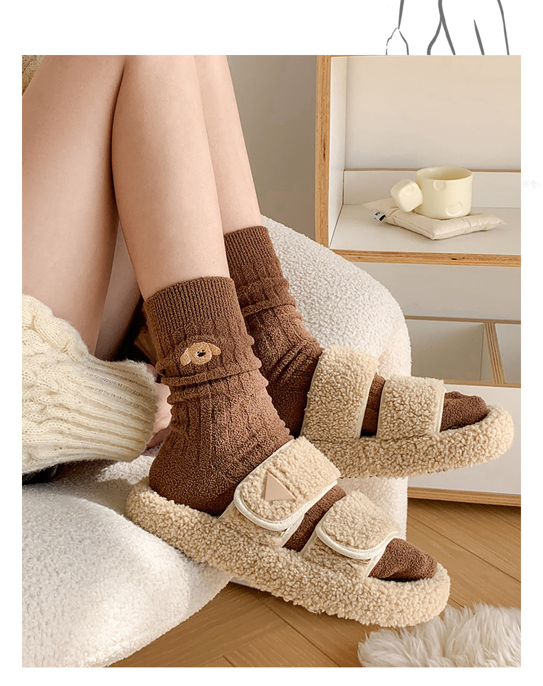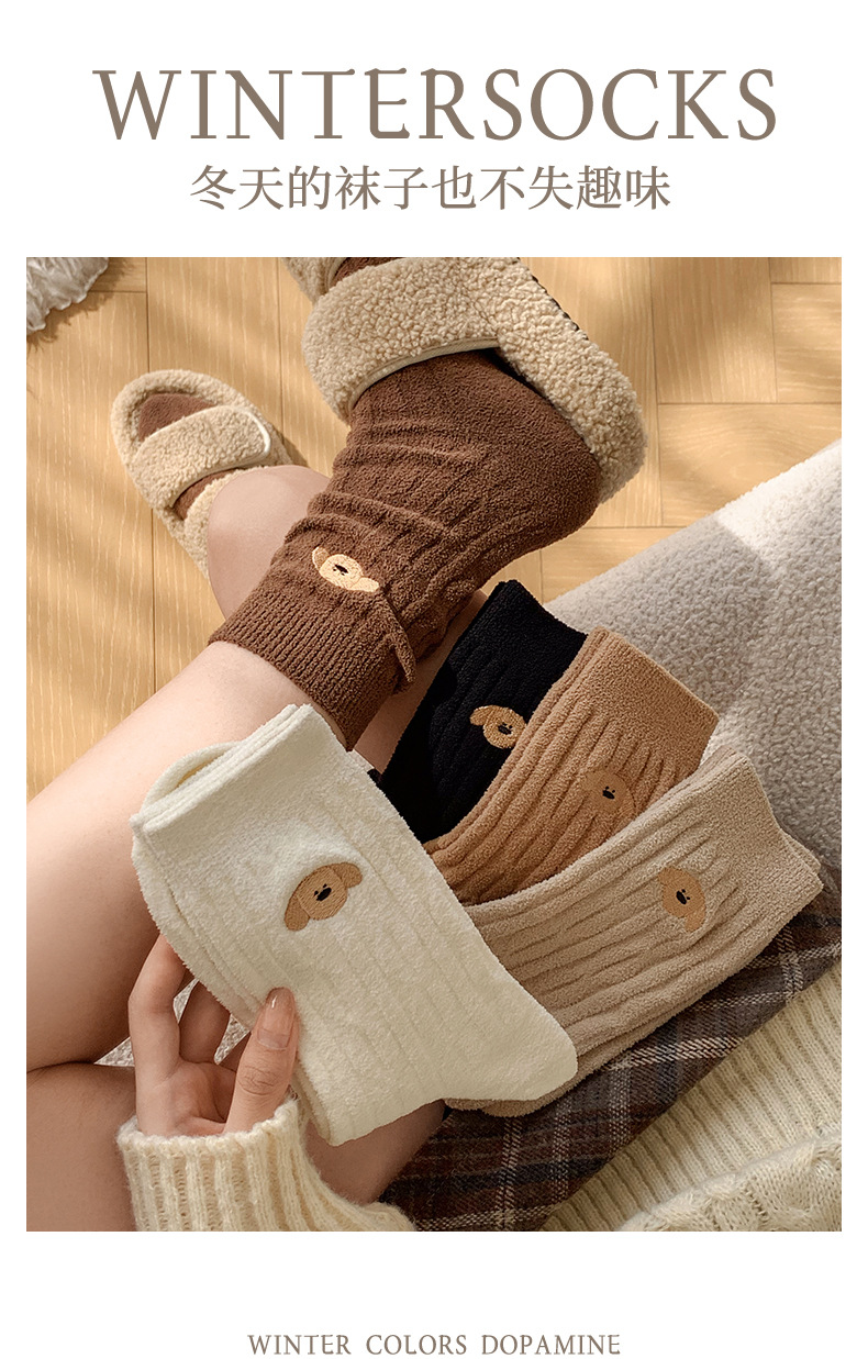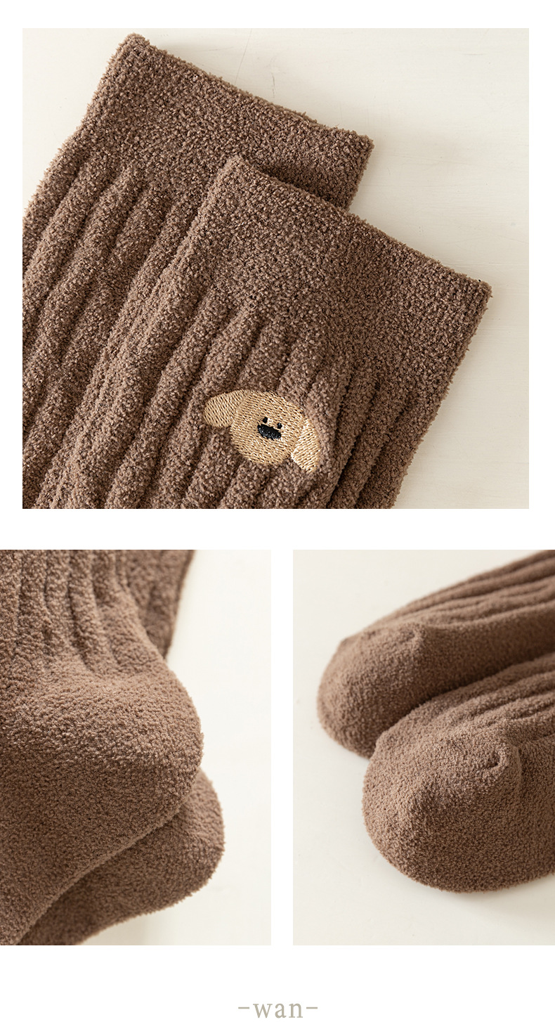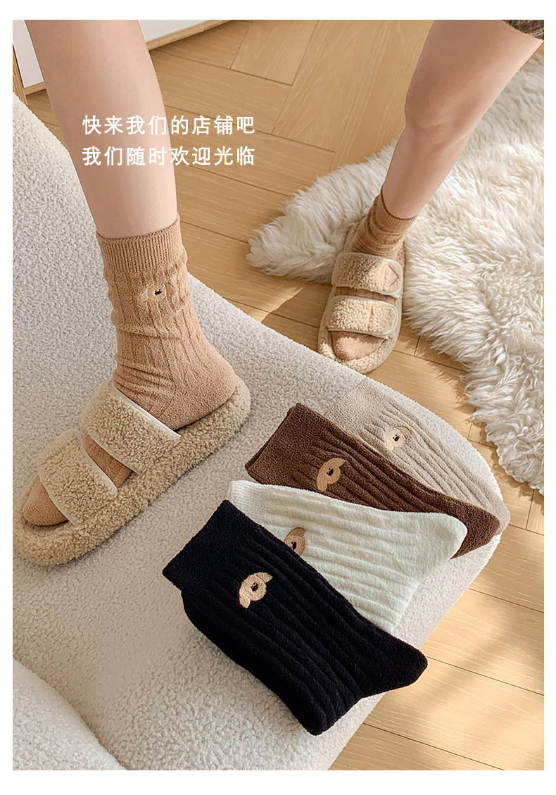 한국식 더블 벨벳 퍼피 소프트 여자 중간 길이 양말 두꺼운 따뜻한 Ins 트렌디 간단한 올 매치 스타킹 여성을위한 가을과 겨울 필 스타킹