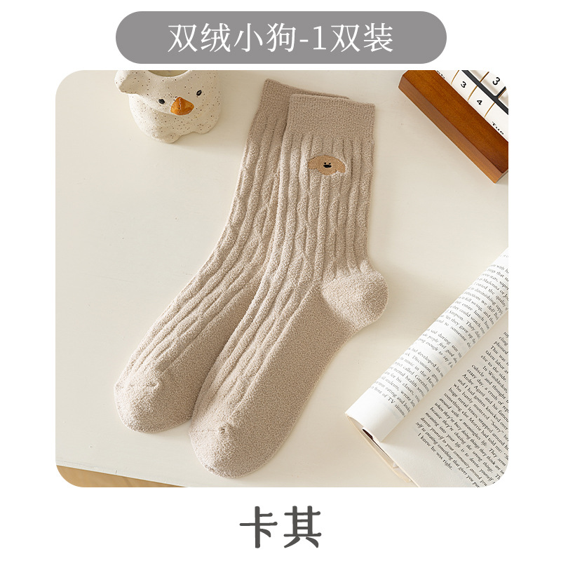 한국식 더블 벨벳 퍼피 소프트 여자 중간 길이 양말 두꺼운 따뜻한 Ins 트렌디 간단한 올 매치 스타킹 여성을위한 가을과 겨울 필 스타킹스토어 가기