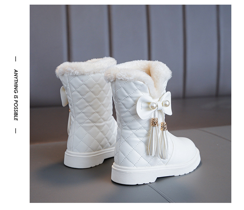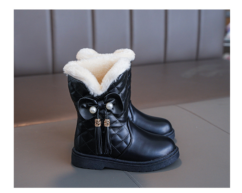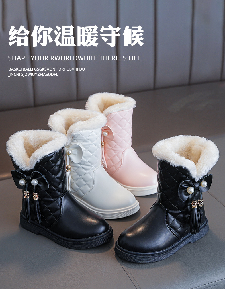 여아 부츠 겨울 2025 새로운 어린이 스노우 부츠 큰 어린이를위한 따뜻한 미끄럼 방지 공주 가죽 짧은 부츠 중간 부츠