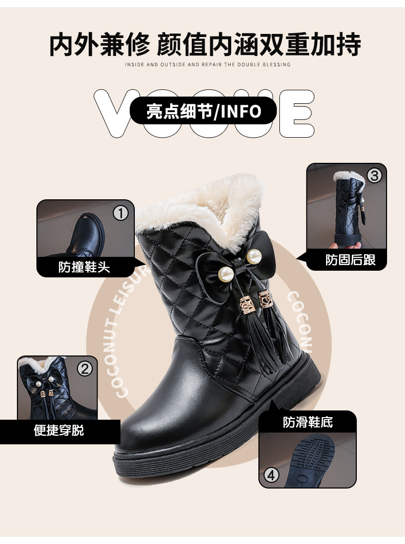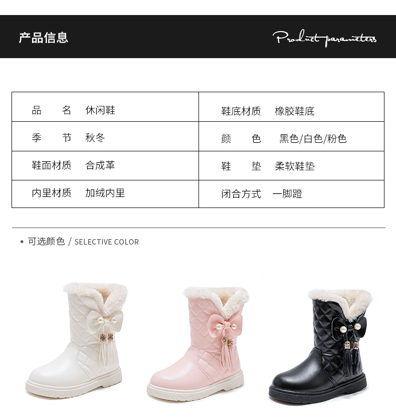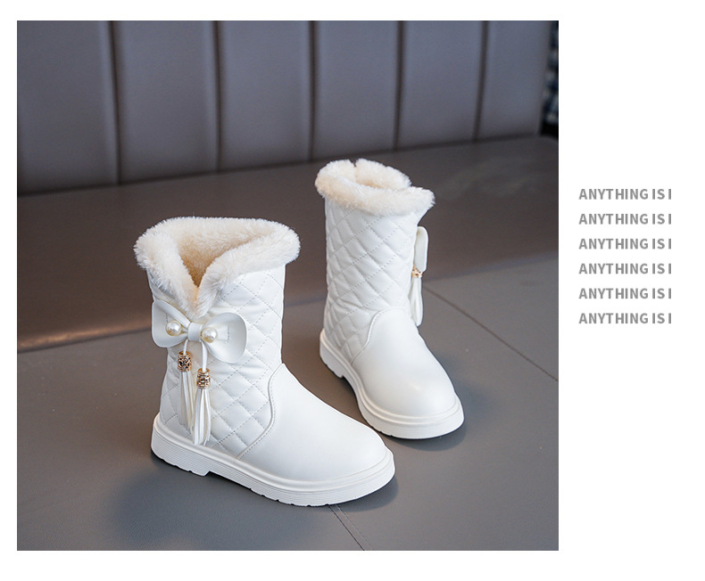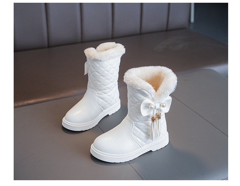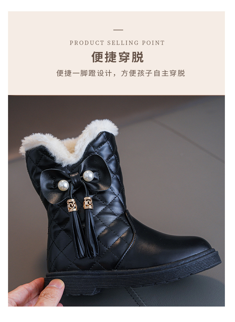 여아 부츠 겨울 2025 새로운 어린이 스노우 부츠 큰 어린이를위한 따뜻한 미끄럼 방지 공주 가죽 짧은 부츠 중간 부츠스토어 가기