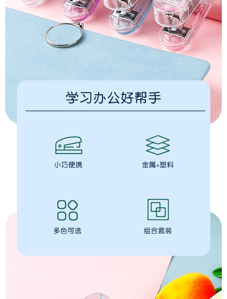 Xiaomeng 어린이 스테이플러 학생 학습 사무실 문구 높은 색상 가치 노동 절약 미니 스몰 사이즈 스테이플러