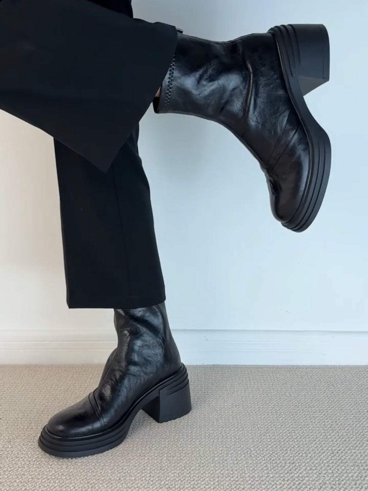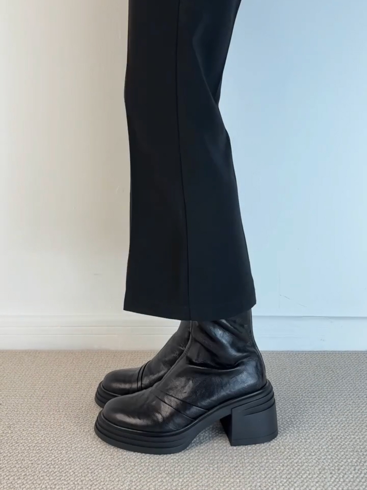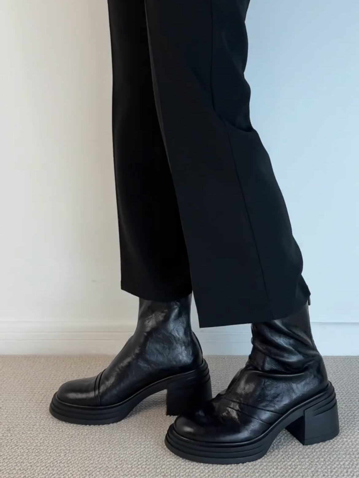 Lan 캐비닛 버전 ~ 작은 두꺼운 바닥 증가 얇은 부츠 여성 마틴 부츠 영국 스타일 레트로 라운드 헤드 두꺼운 힐 짧은 부츠스토어 가기
