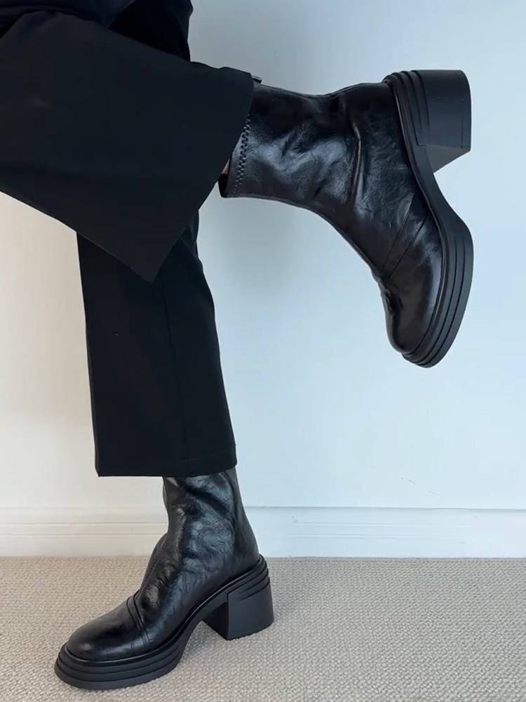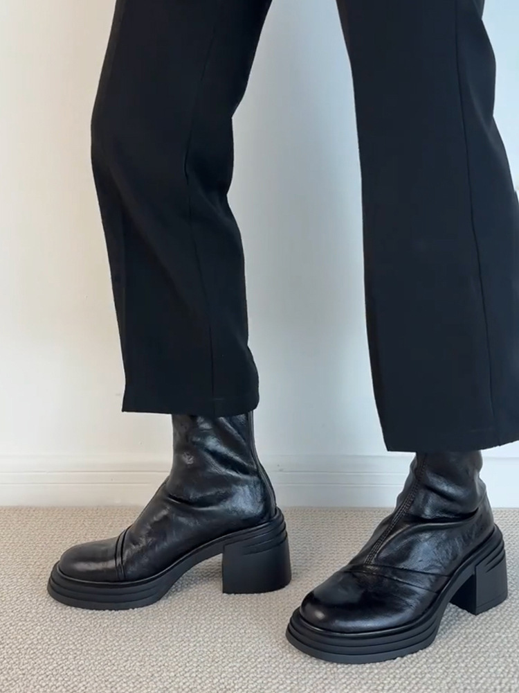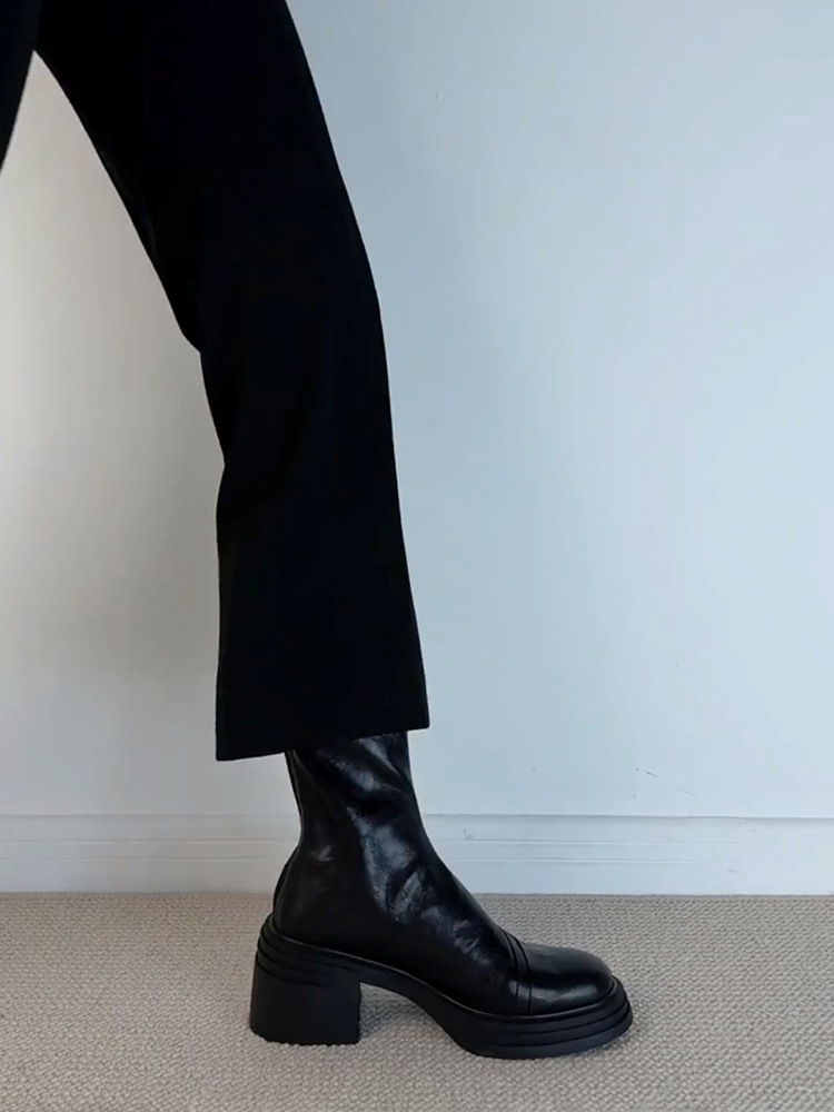 Lan 캐비닛 버전 ~ 작은 두꺼운 바닥 증가 얇은 부츠 여성 마틴 부츠 영국 스타일 레트로 라운드 헤드 두꺼운 힐 짧은 부츠