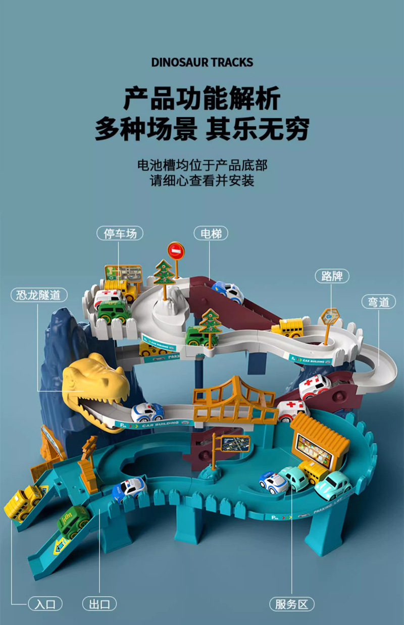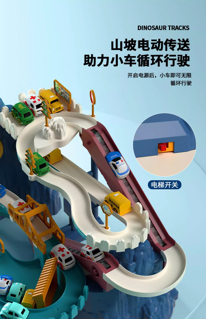 어린이 공룡 전기 Railcar 장난감 판산 고속도로 작은 기차 주차장 신년 선물스토어 가기