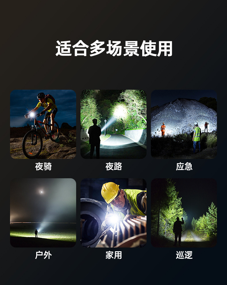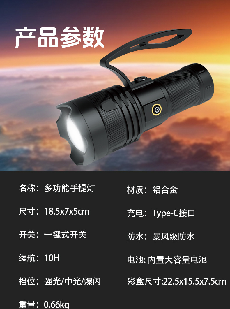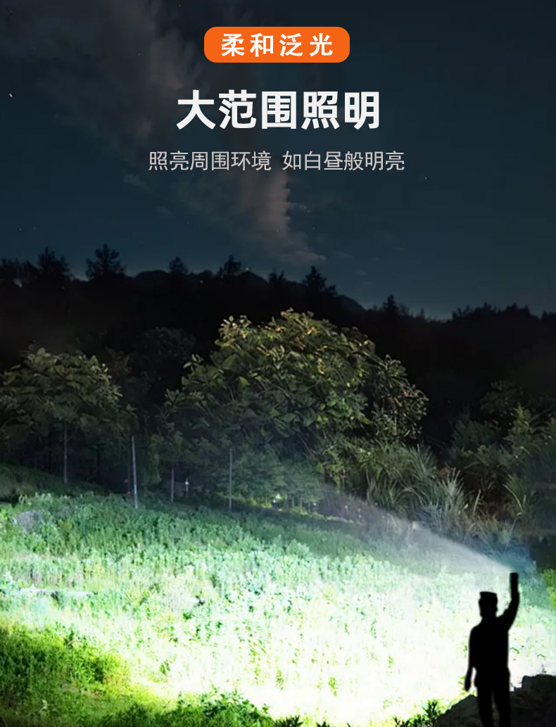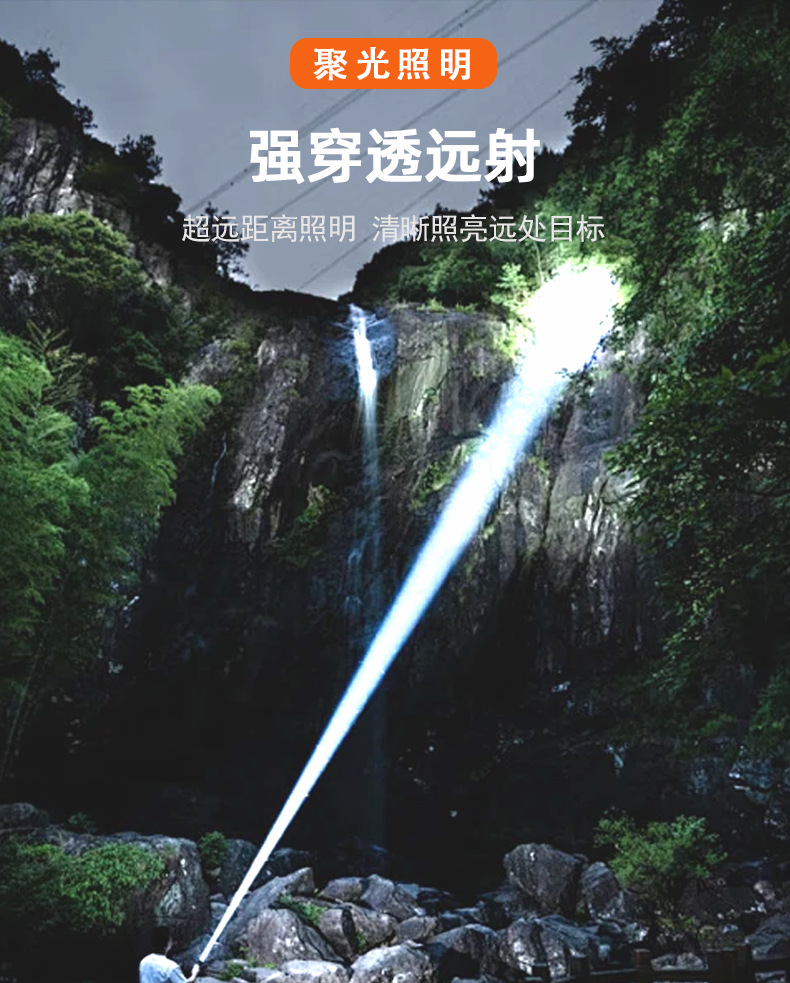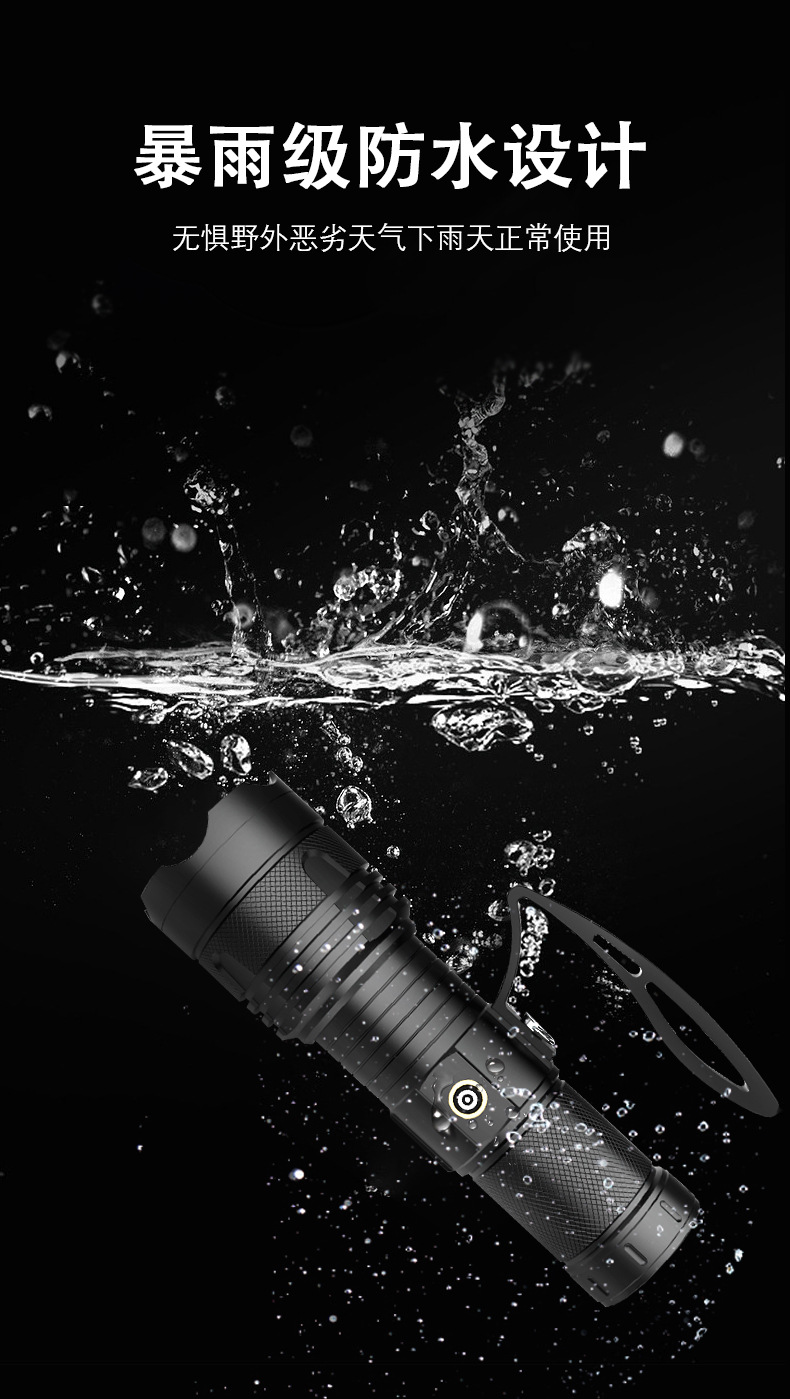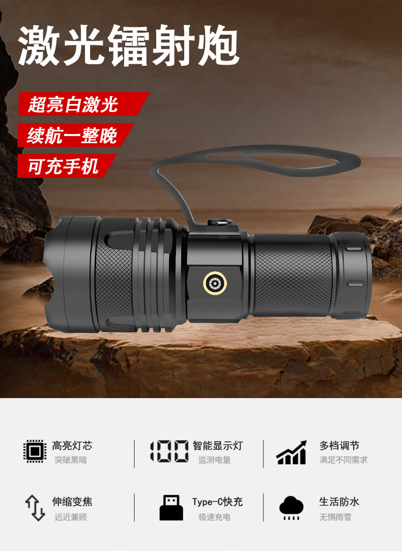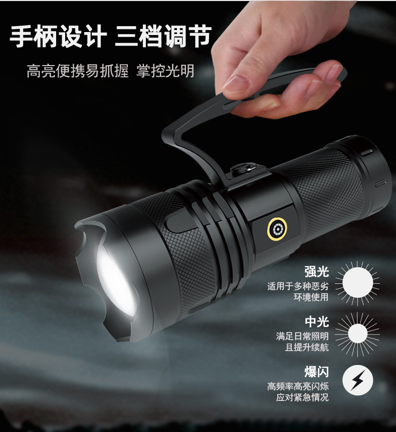 국경 줌 야외 강한 빛 충전식 LED 탐조등 강한 빛 조명 알루미늄 합금 휴대용 손전등스토어 가기