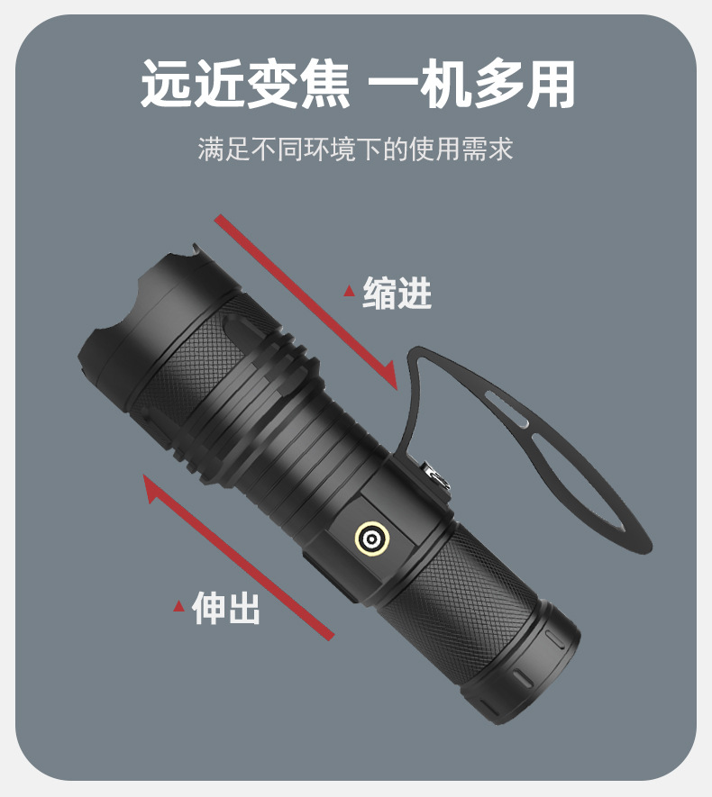 국경 줌 야외 강한 빛 충전식 LED 탐조등 강한 빛 조명 알루미늄 합금 휴대용 손전등