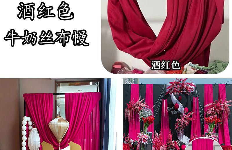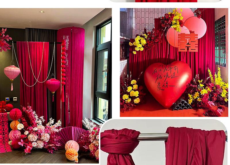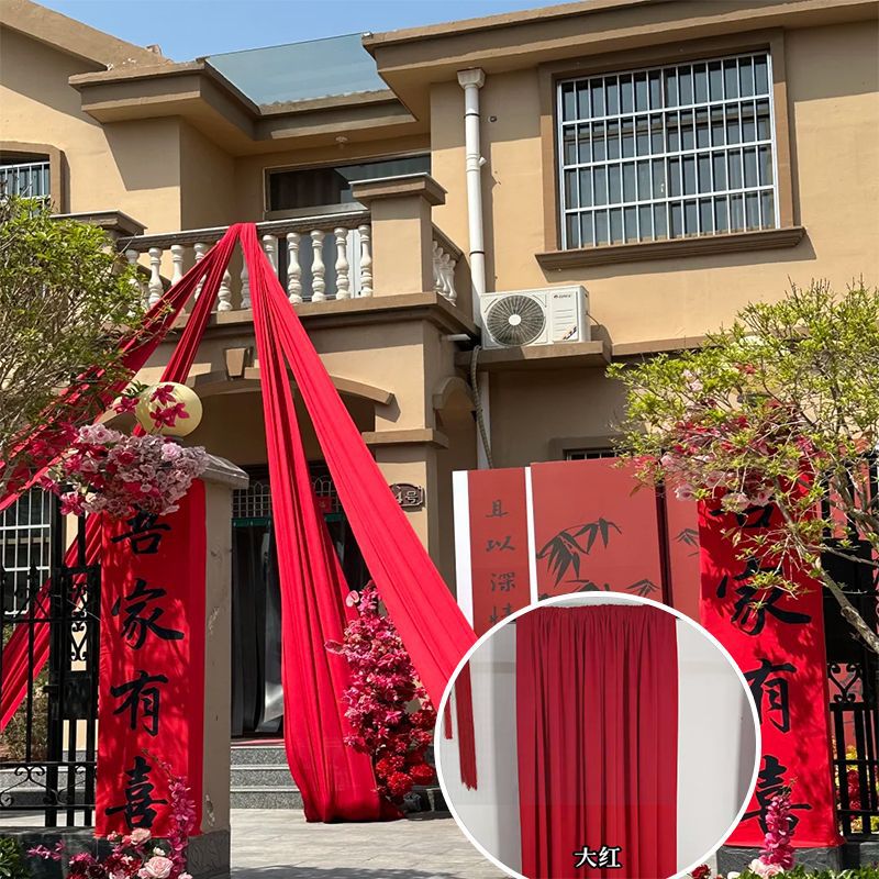 农村户外院子婚礼挂布弹力布幔红色系牛奶丝布幔婚房装饰庭院布置