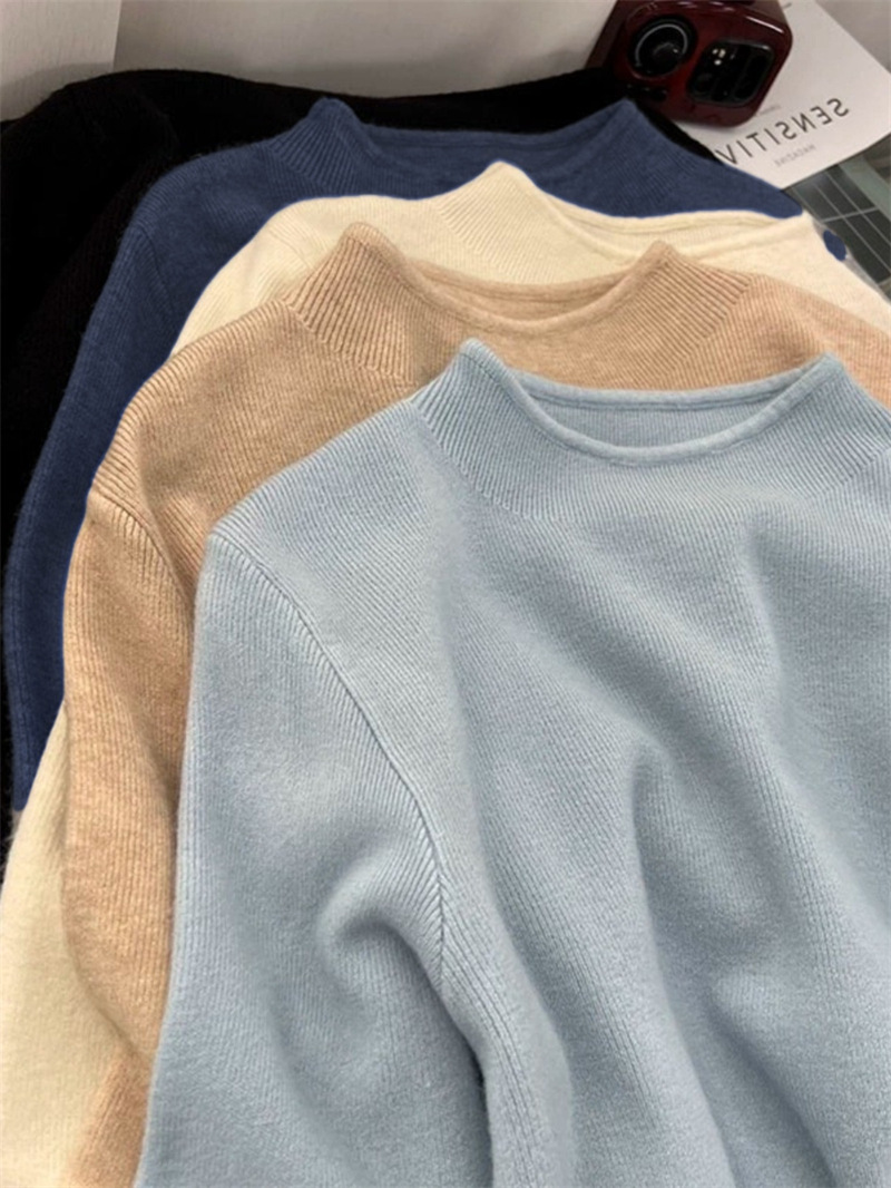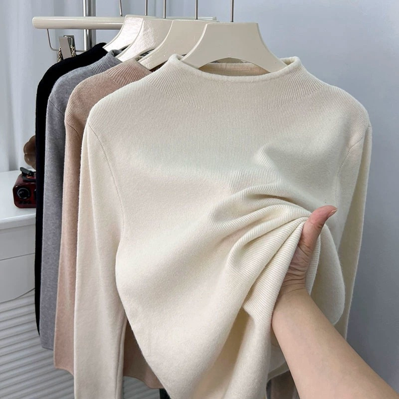 부드러운 앤디 벨벳 하프 터틀넥 니트 여성용 가을 겨울 기본 솔리드 컬러 이너웨어 풀오버 스웨터