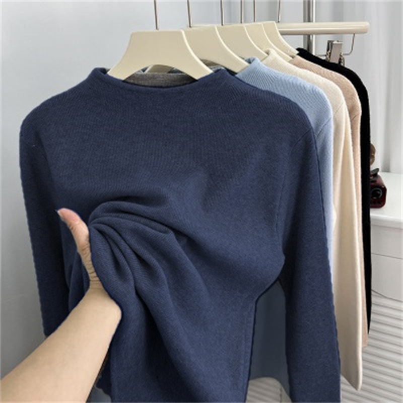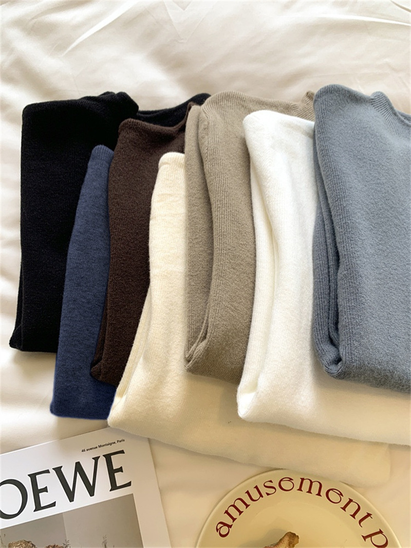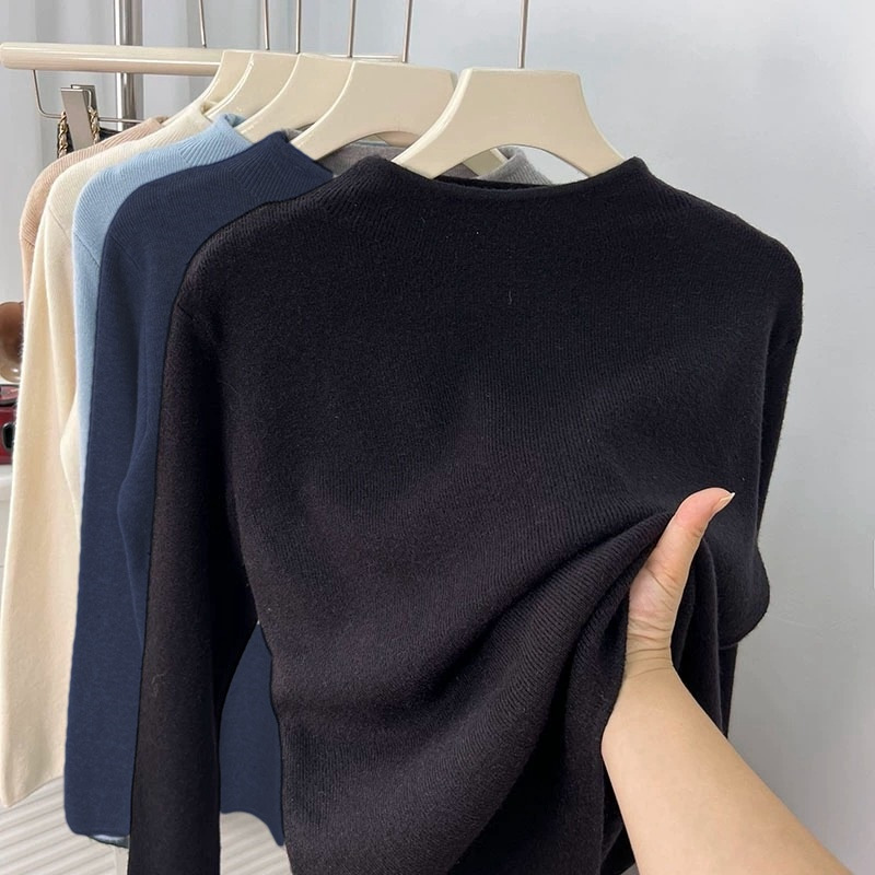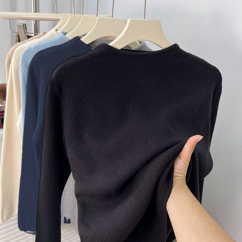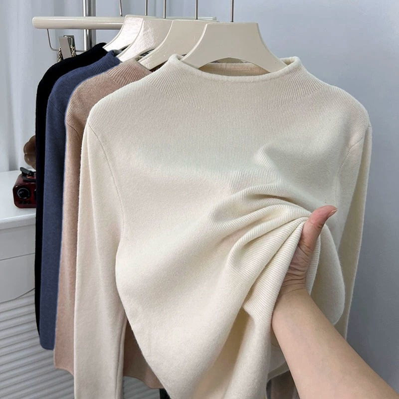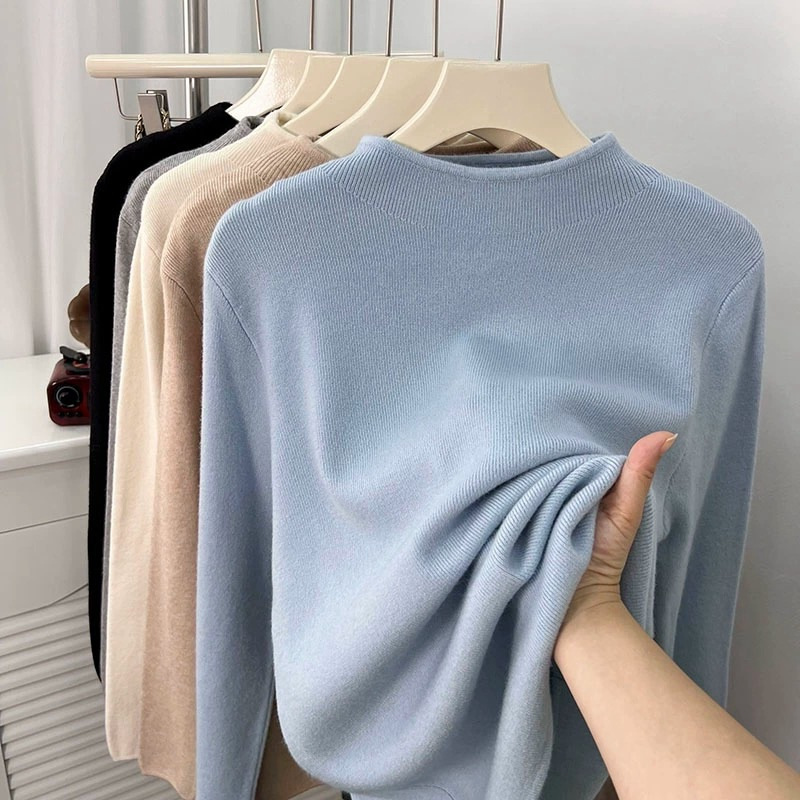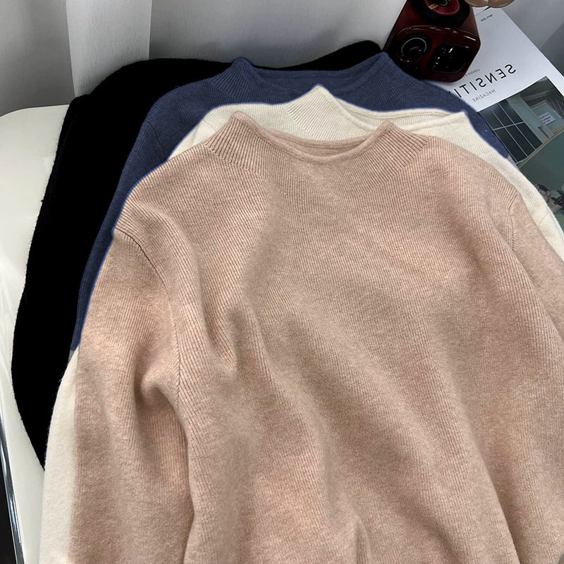 부드러운 앤디 벨벳 하프 터틀넥 니트 여성용 가을 겨울 기본 솔리드 컬러 이너웨어 풀오버 스웨터스토어 가기