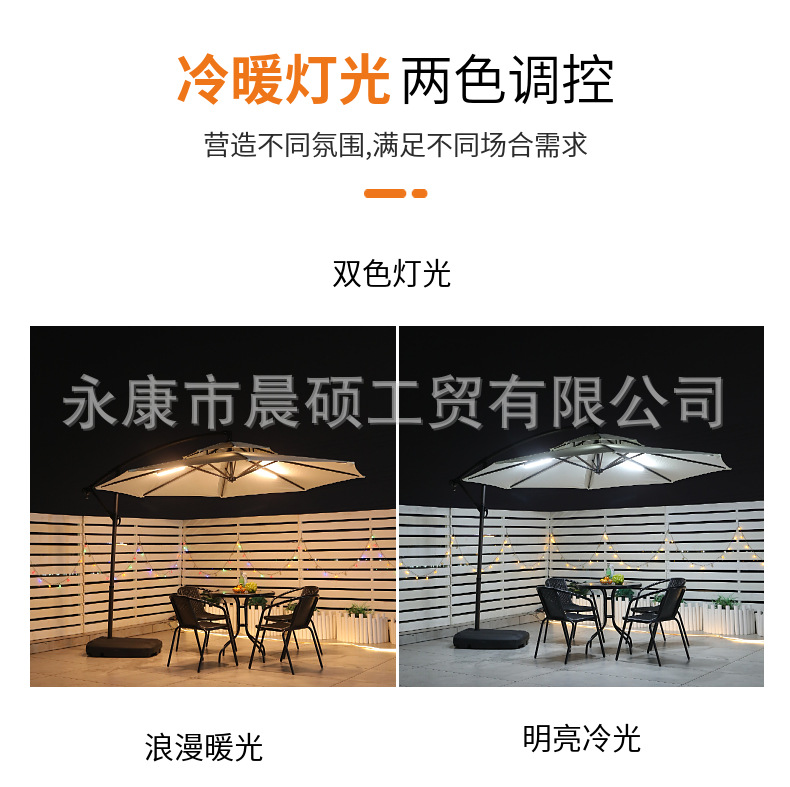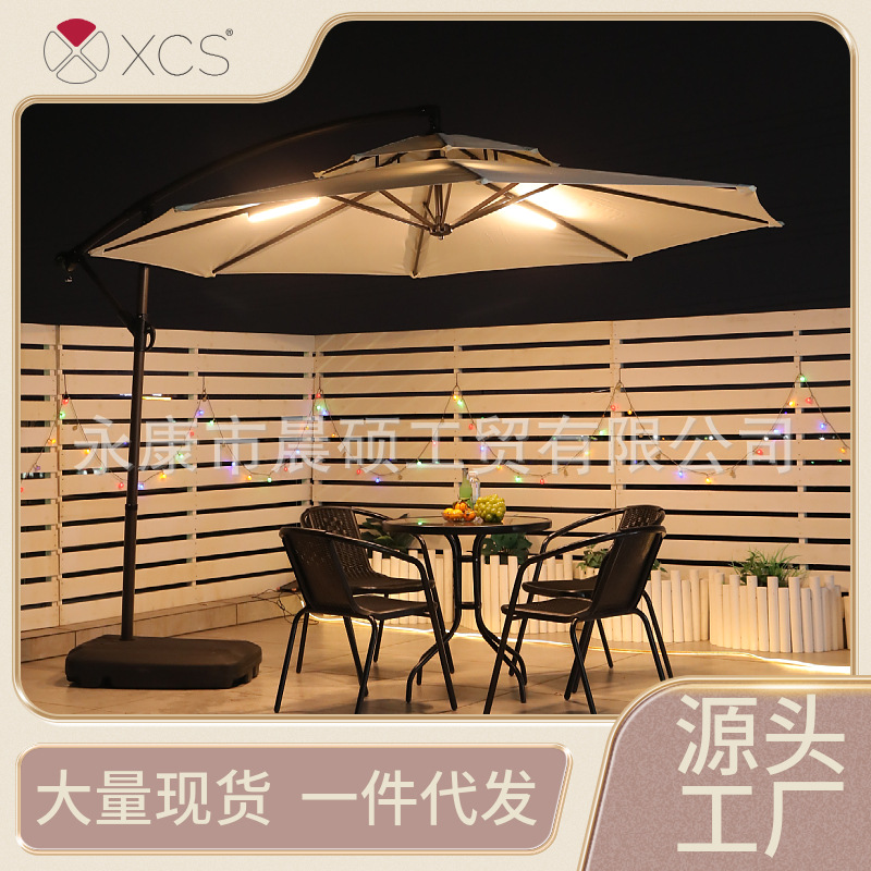 Xcs 특허 야외 우산 조명 led 태양 우산 라이트 바 안뜰 우산 로마 우산 실속 야외 상업 우산 조명