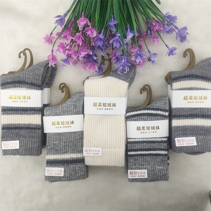 Yue 짠 대나무 두꺼운 바늘 카멜 벨벳 양말 가을과 겨울 숙녀 따뜻한 양말 스트라이프 튜브 양말 여성의 단색 양말 도매