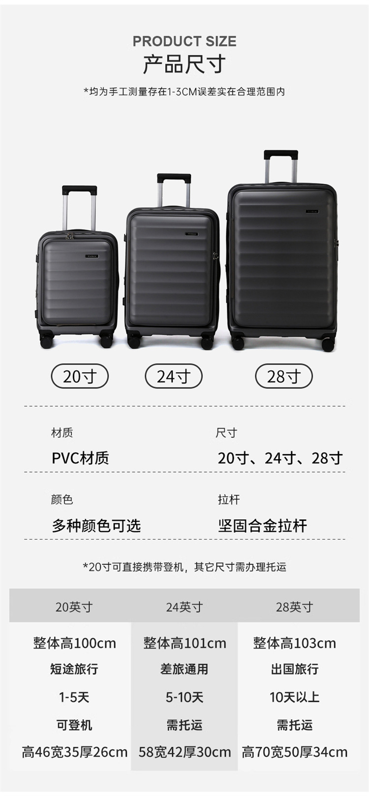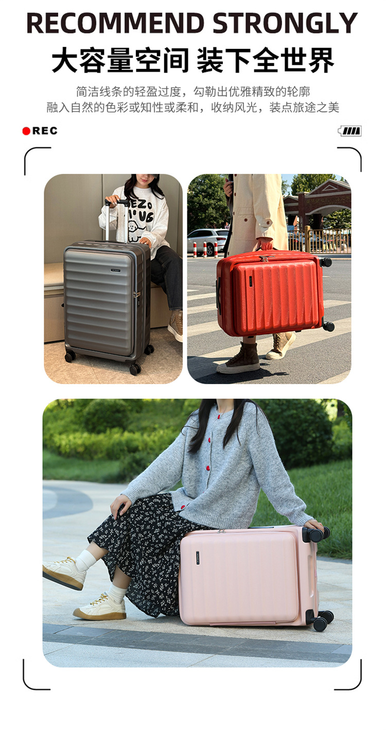 2025 새로운 측면 개방형 가방 비즈니스 여행 탑승 트롤리 케이스 20인치 24inch 28inch 가방