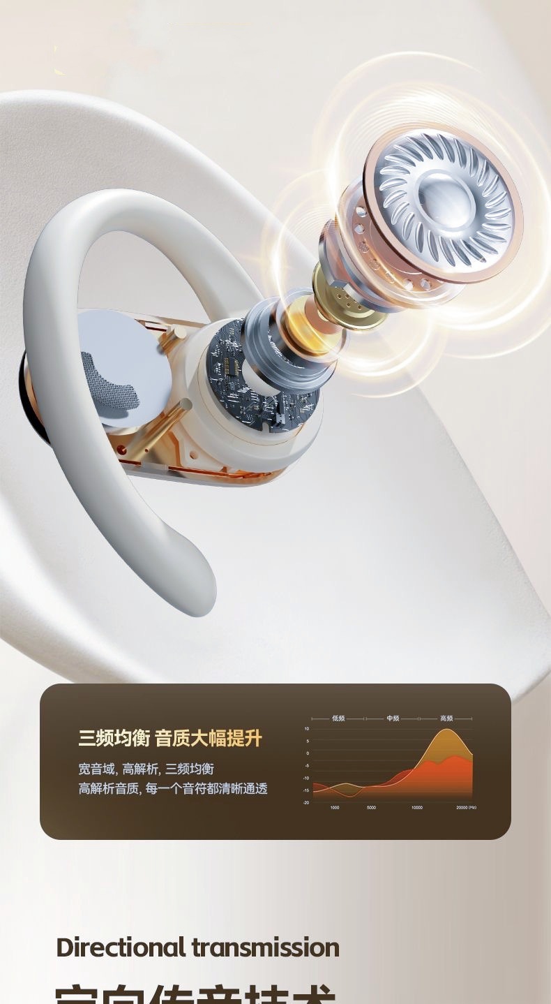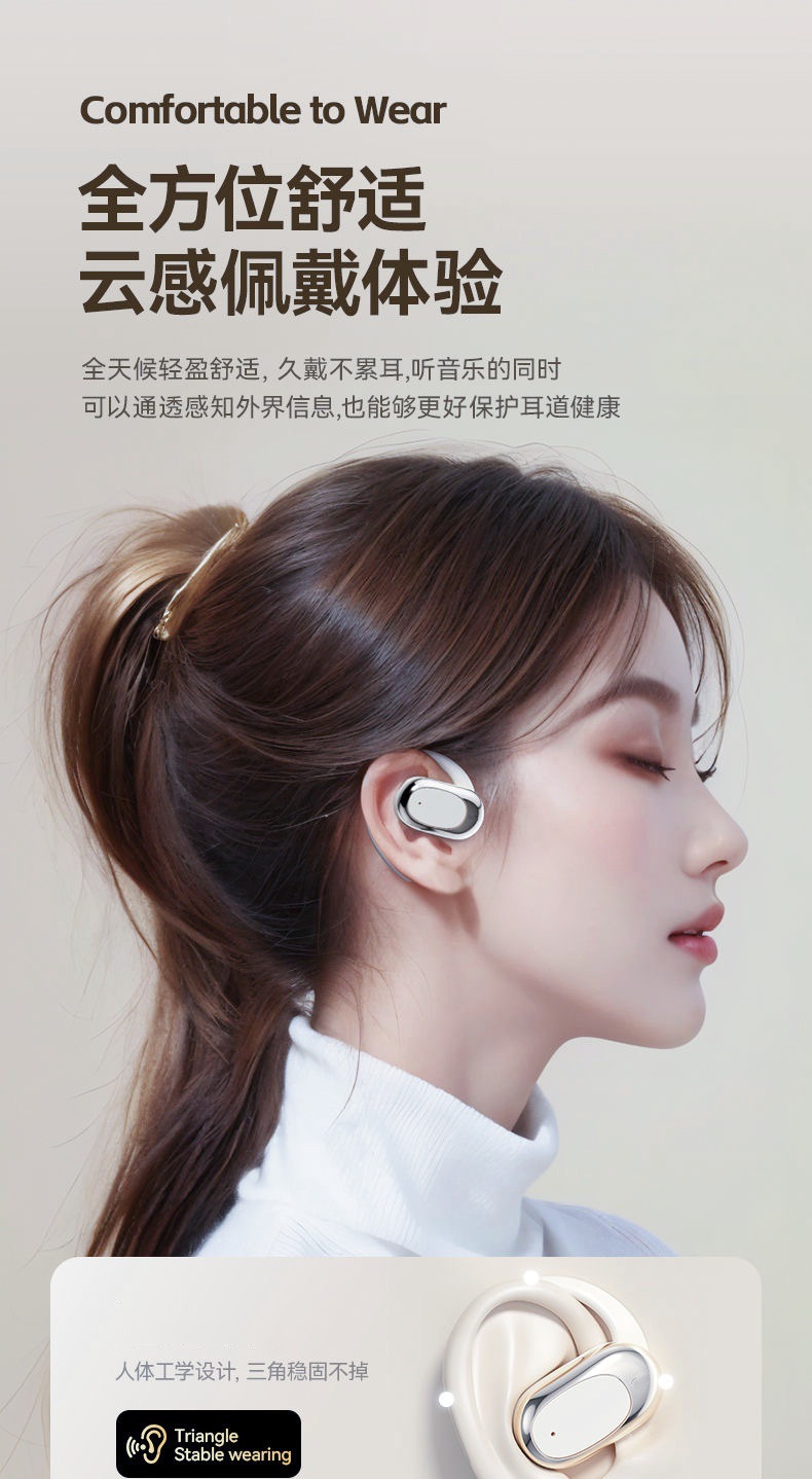 신형 인이어 무선 블루투스 이어폰, 긴 배터리 수명, 고품질 통화, 스포츠용 오픈형 귀걸이형 이어폰