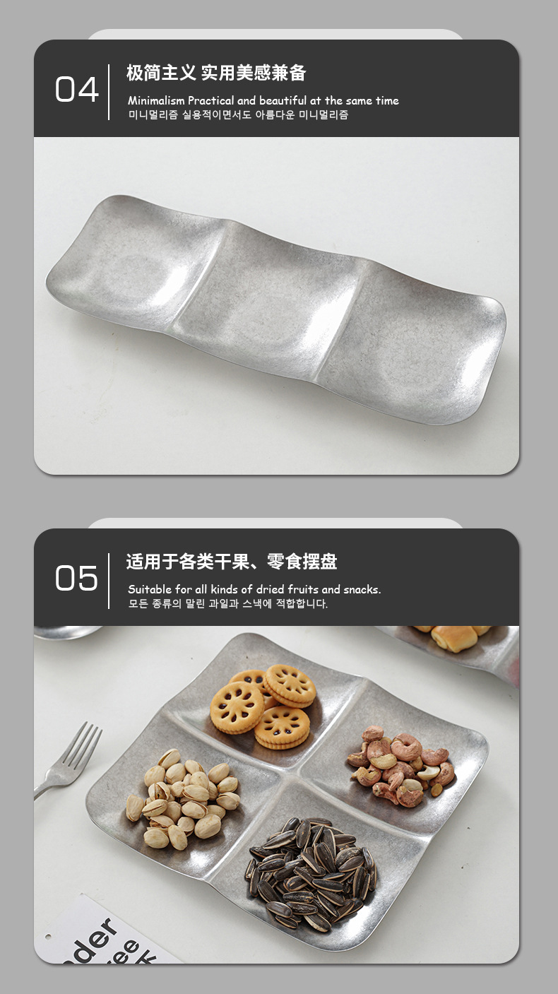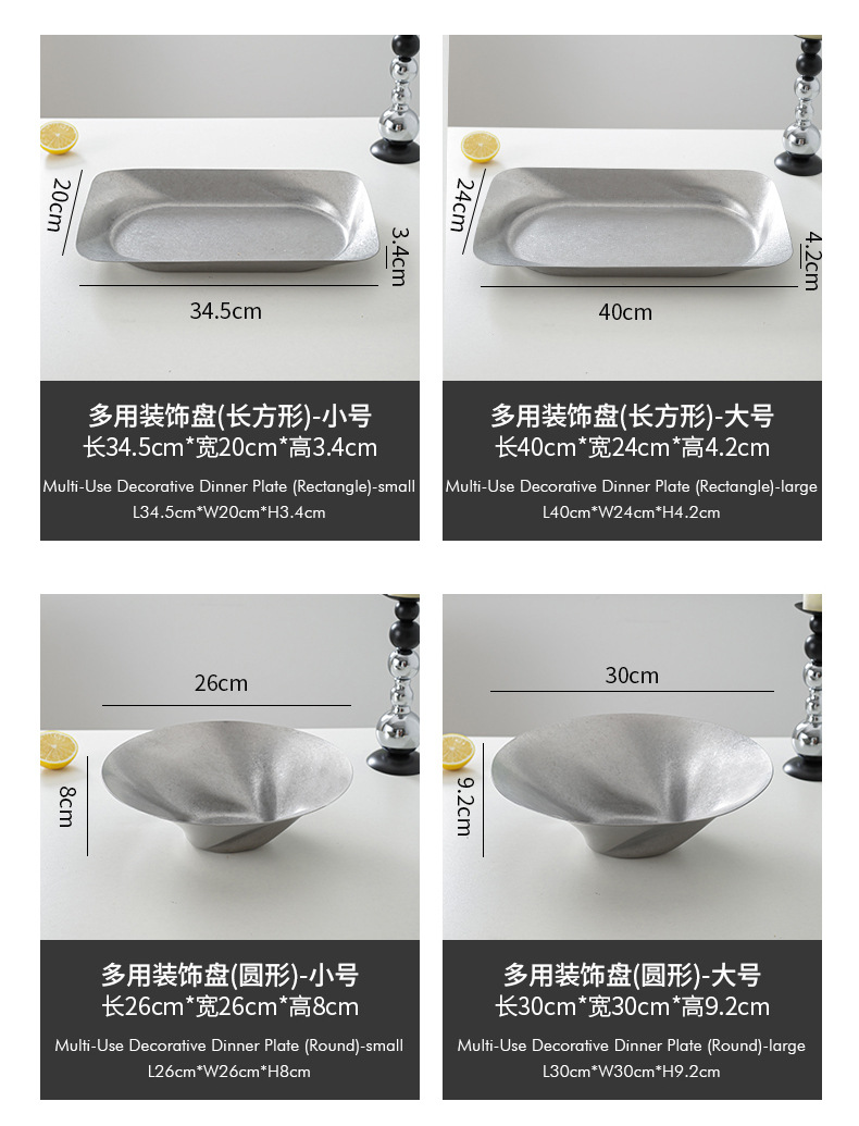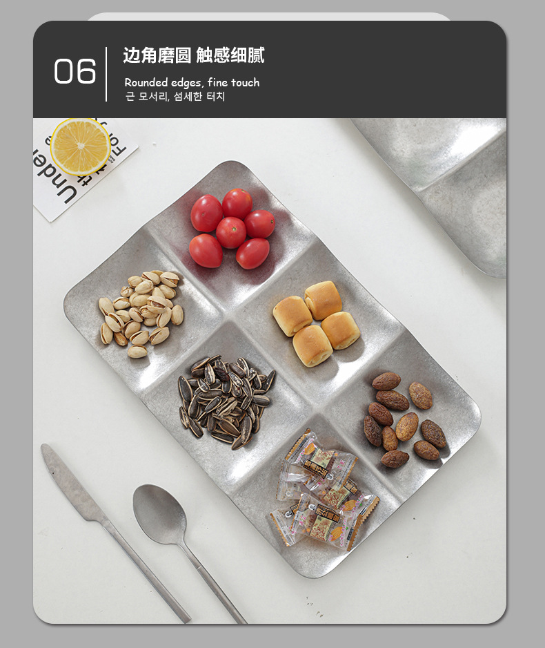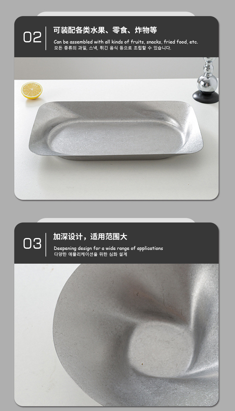 레트로 대형 스테인리스 접시 불규칙한 원형 사각형 깊은 과일 간식 장식 접시 상업용 가정용 창의적스토어 가기