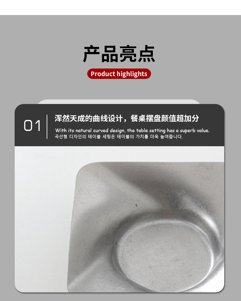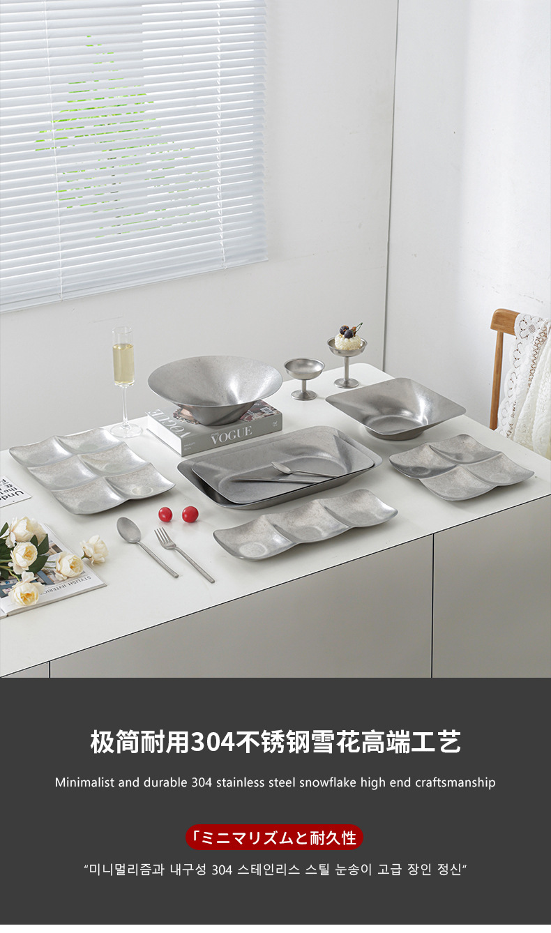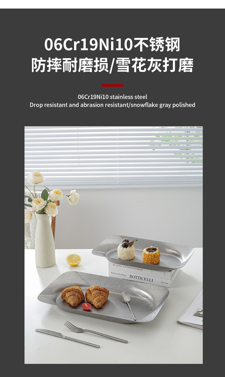 레트로 대형 스테인리스 접시 불규칙한 원형 사각형 깊은 과일 간식 장식 접시 상업용 가정용 창의적스토어 가기
