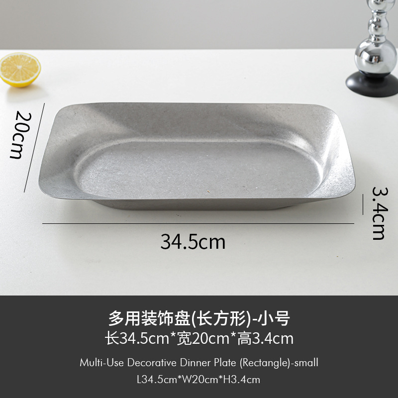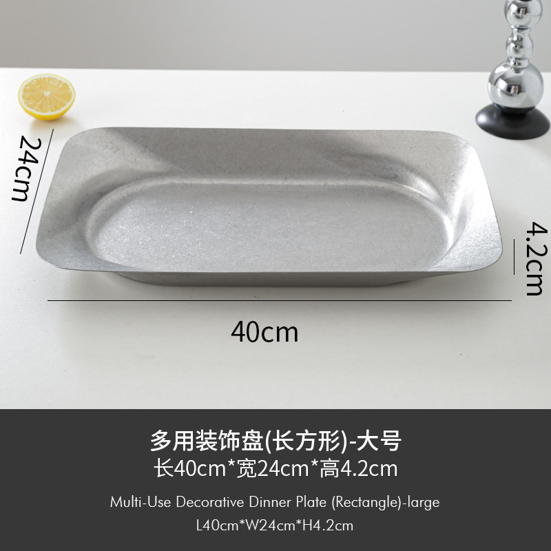 레트로 대형 스테인리스 접시 불규칙한 원형 사각형 깊은 과일 간식 장식 접시 상업용 가정용 창의적