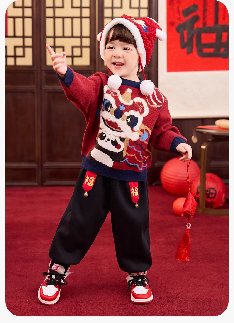 낙서 가족 어린이 신년 옷 겨울 소년 스웨터 신년 여아 니트 셔츠 축제 아기 자켓 어린이 옷