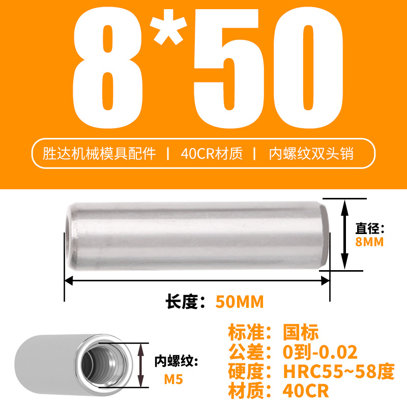 • 양단 내부 스레드 핀 8*50 내부 스레드 M5