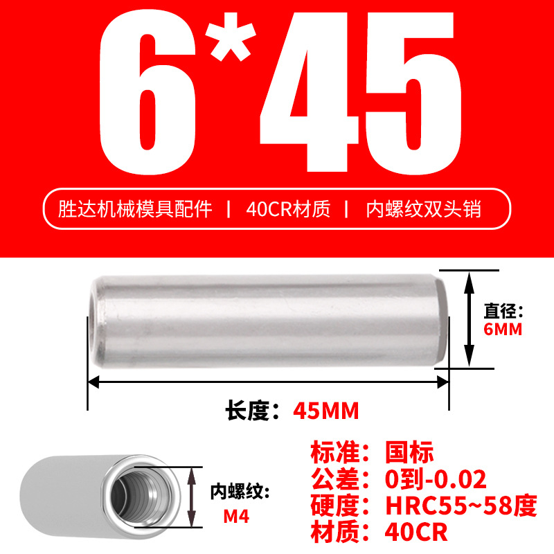 • 양단 내부 스레드 핀 6*45 내부 스레드 M4