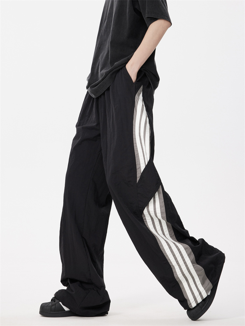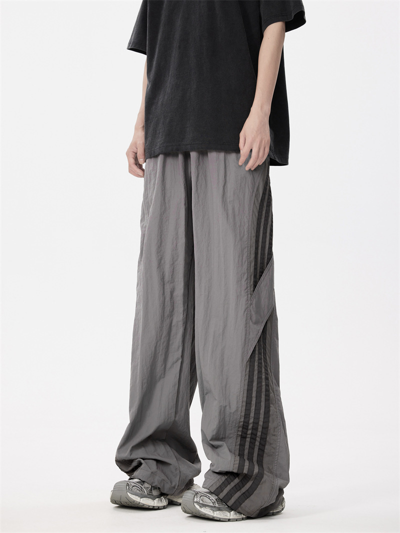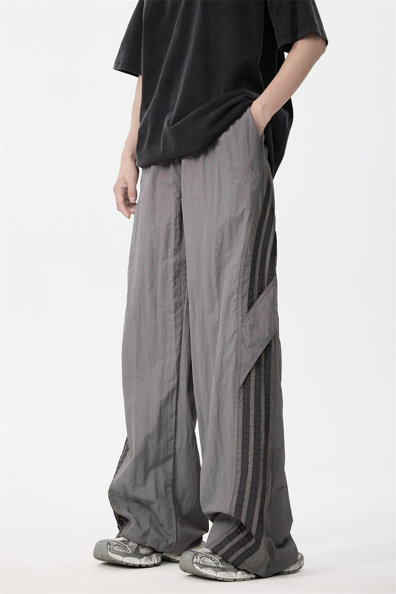 여름 새로운 빠른 건조 낙하산 병 캐주얼 바지 남성용 느슨한 스트레이트 레그 스포츠 바지 미국 스타일 트렌디 브랜드 스트라이프 긴 바지