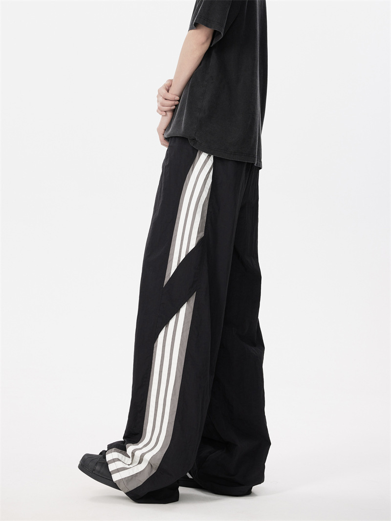 여름 새로운 빠른 건조 낙하산 병 캐주얼 바지 남성용 느슨한 스트레이트 레그 스포츠 바지 미국 스타일 트렌디 브랜드 스트라이프 긴 바지스토어 가기