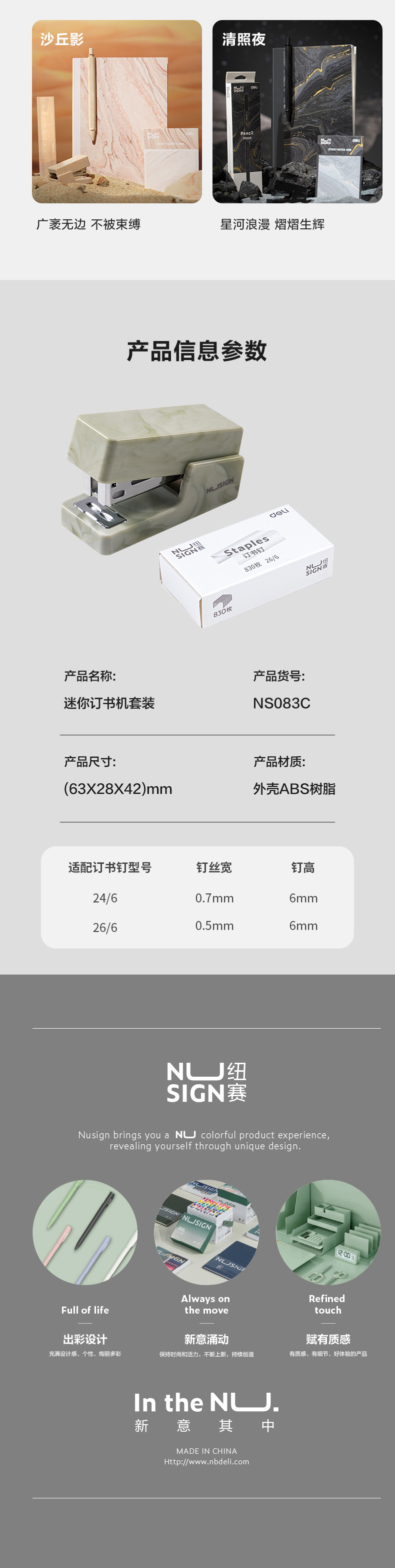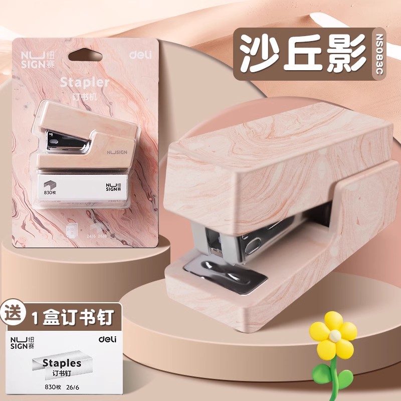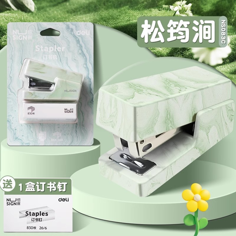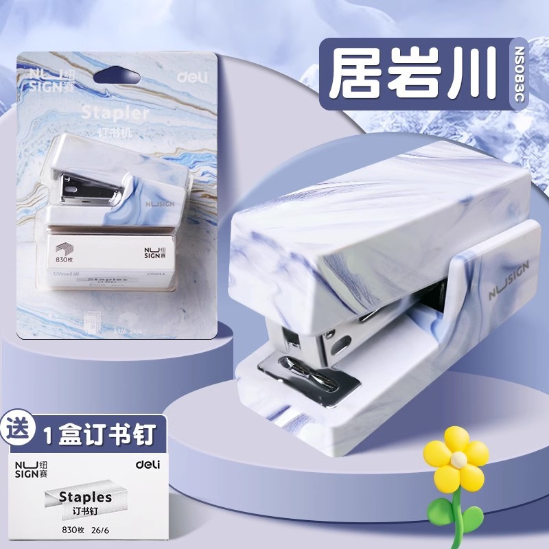 학생들을위한 델리 NS083C 뉴지 스테이플러 천연 유체 스테이플러 천연 미니 스몰 사이즈 스테이플러