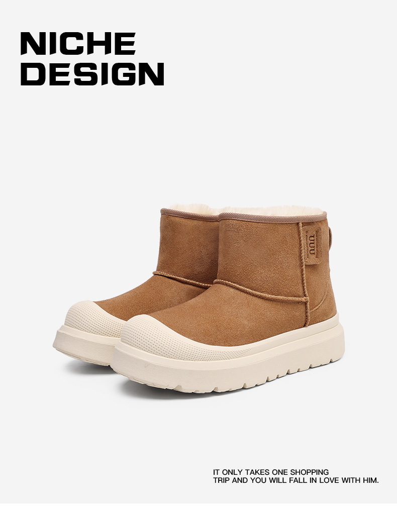 커플의 인터넷-유명한 두꺼운 밑창 스노우 부츠 2024 겨울 새로운 간단한 바람 모피 하나의 따뜻한 코튼 신발스토어 가기