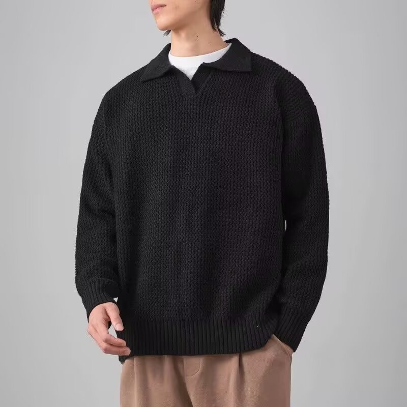 무거운 옷깃 스웨터 남자의 가을과 겨울 느슨한 게으른 스타일 병 따뜻한 단색 풀오버 스웨터 커플 코트