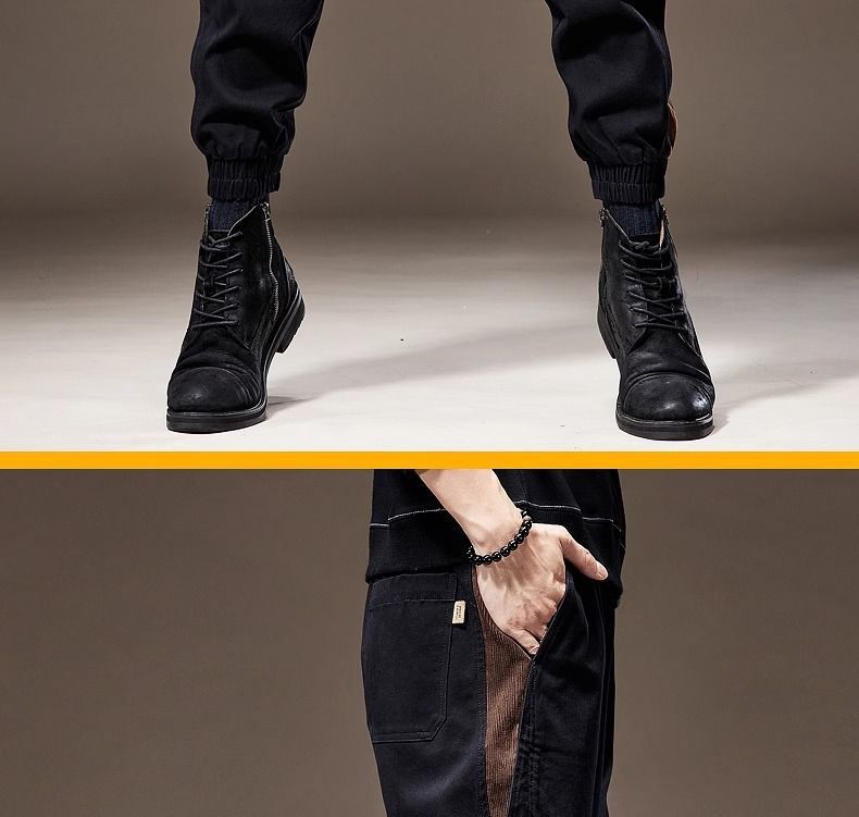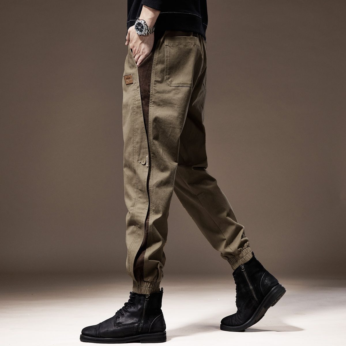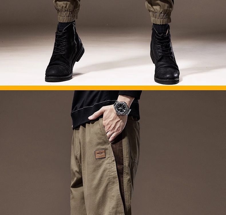 미국 빈티지 오버홀 남성 2024 년 봄과 가을 새로운 느슨한 스트레이트 스티칭 바지 착용 방지 작업 바지
