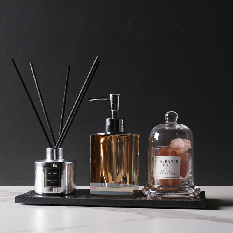 가벼운 고급 현대 모델 룸 욕실 욕조 사이드 크리스탈 손 소독제 병 아로마 테라피 저장 트레이 조합 장식품스토어 가기