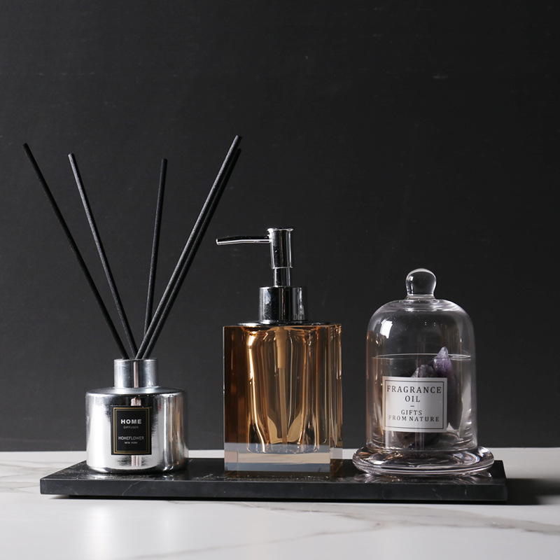 가벼운 고급 현대 모델 룸 욕실 욕조 사이드 크리스탈 손 소독제 병 아로마 테라피 저장 트레이 조합 장식품