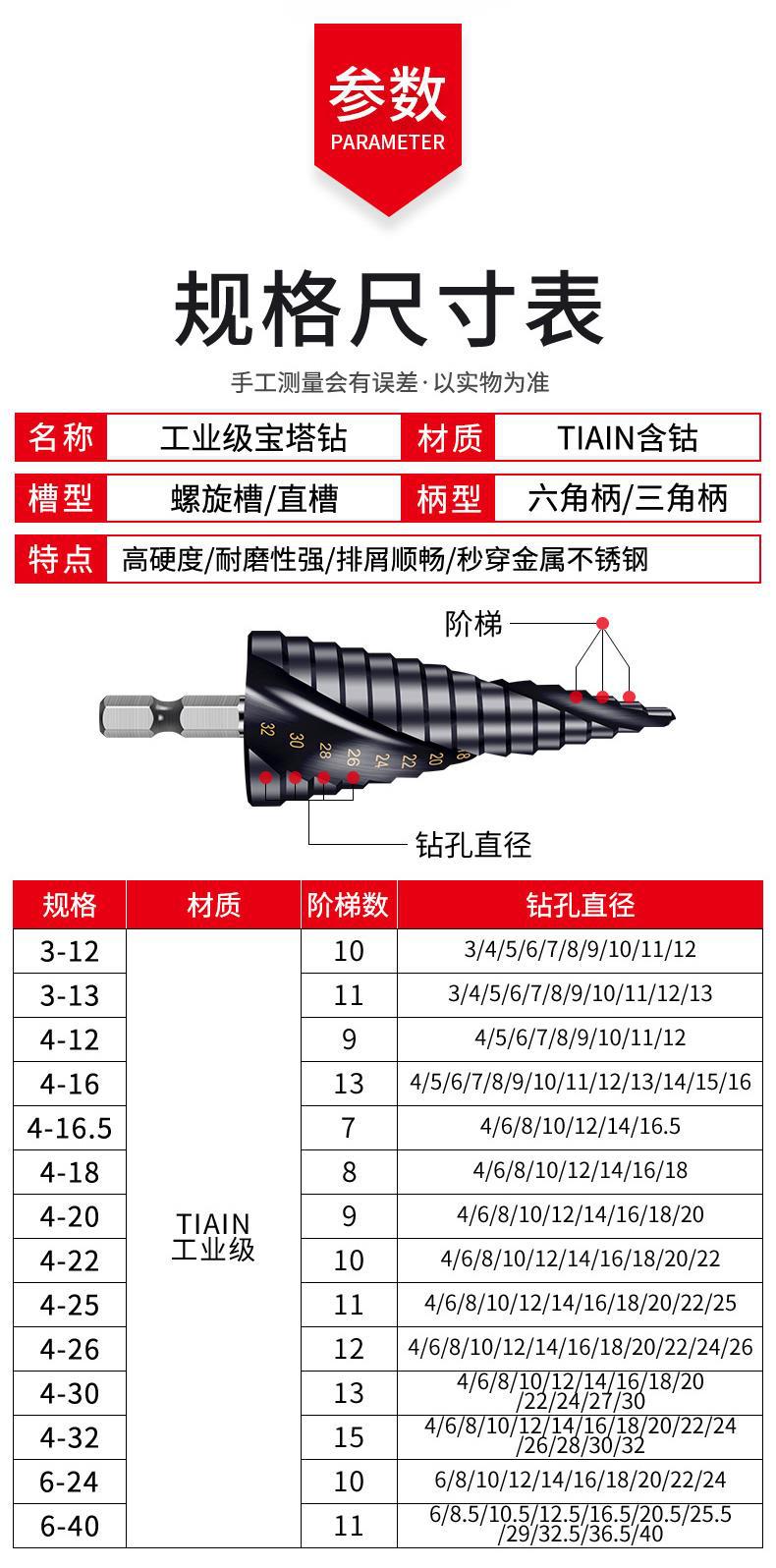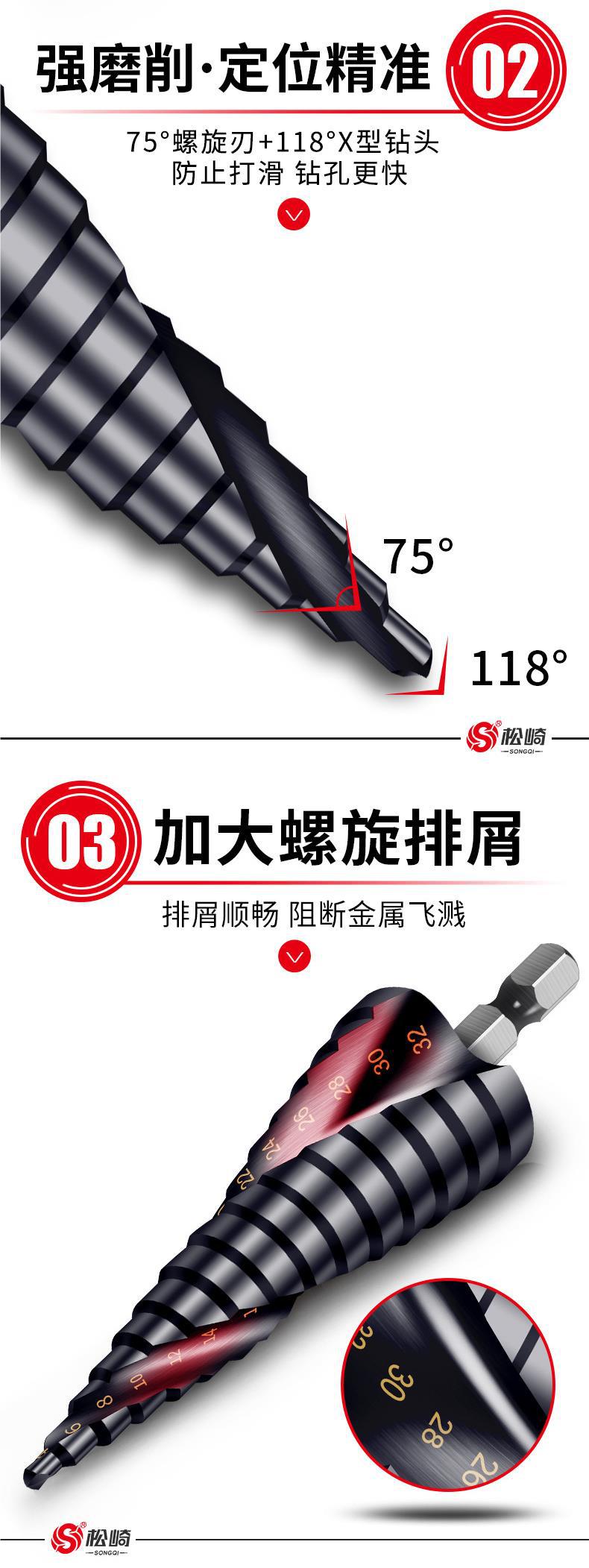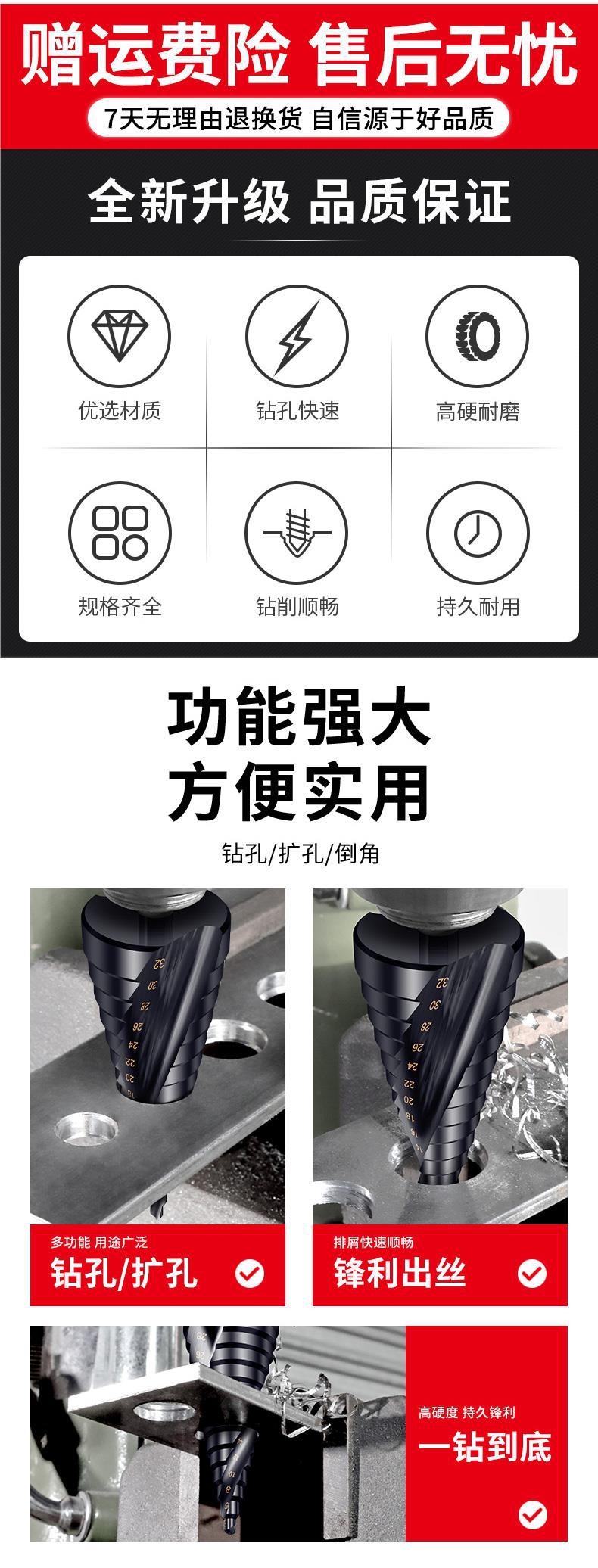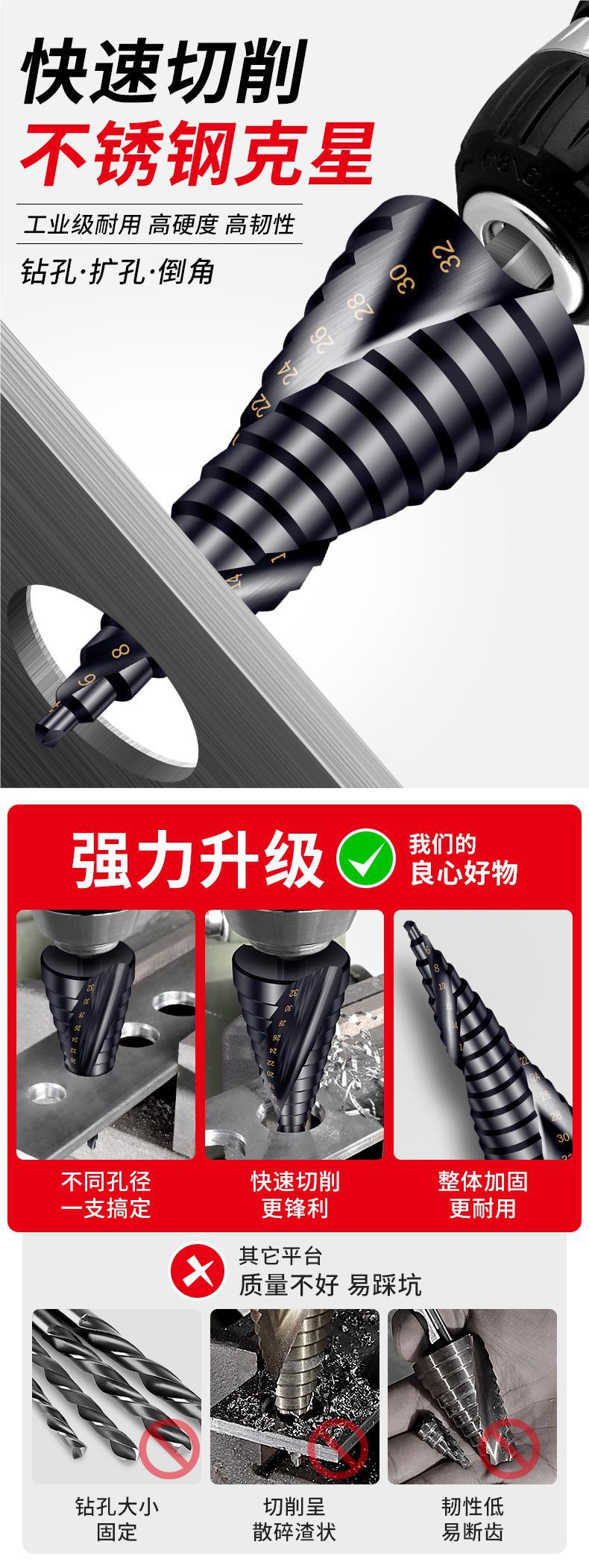 파고다 드릴 유니버설 드릴링 산업 등급 나선형 금속 구멍 열기 스테인레스 스틸 특수 고경도 스텝 드릴스토어 가기