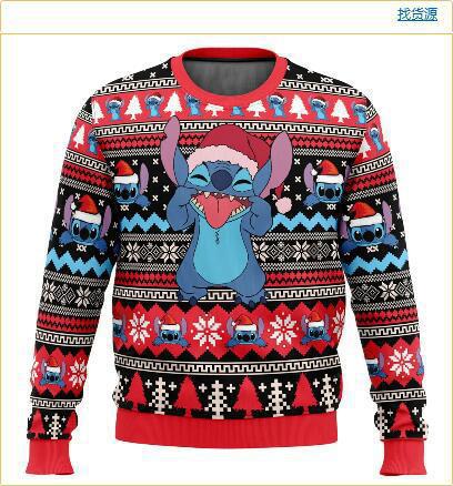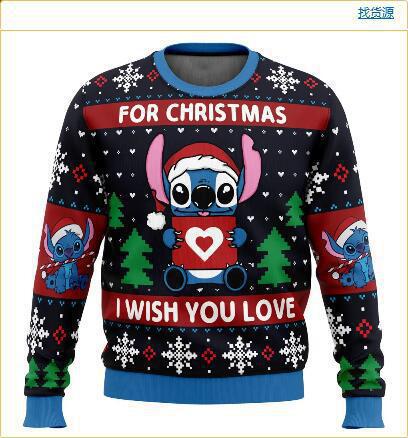 2024 새로운 3D 디지털 인쇄 라운드 넥 스웨터 국경 아마존 크리스마스 스웨터 남성과 여성의 애니메이션 스웨터스토어 가기